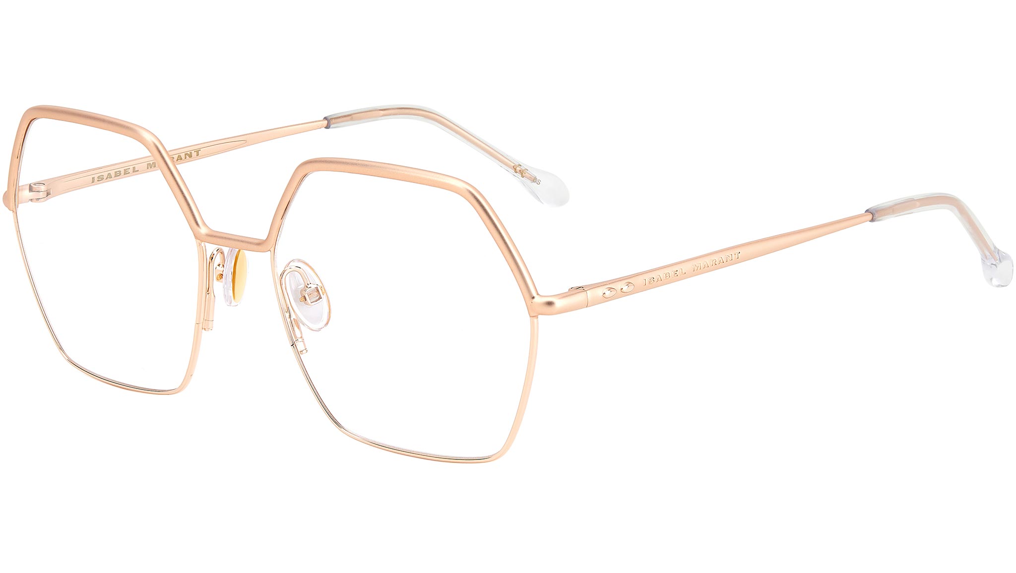 Occhiali da vista Isabel Marant modello IM 0126 codice colore DDB Gold Copper con lenti demo. Eleganza quotidiana con l'eyewear Wild Metal di Isabel Marant. Le silhouette della collezione si ispirano al carattere easy ed essenziale del brand, offrendo una selezione di montature in metallo dalle linee leggere e minimali. Questi occhiali da vista presentano una forma esagonale, con naselli regolabili per un comfort ottimale. I dettagli tridimensionali sulle aste e sui terminali richiamano il motivo a foglia del brand, mentre il logo inciso al laser aggiunge un tocco esclusivo al modello.