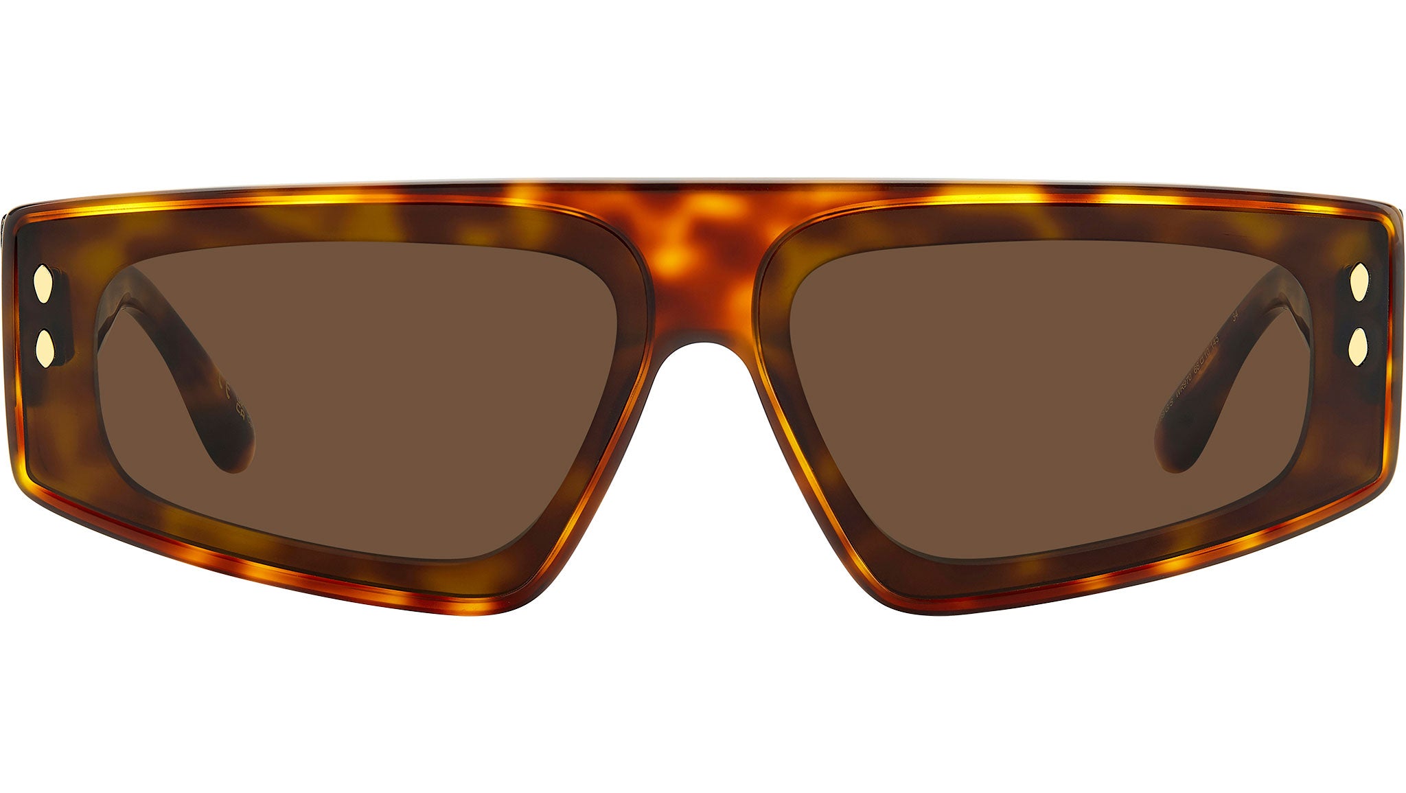 Occhiali da sole Isabel Marant modello IM 0169/G/S codice colore 5WR 70 Brown Havana con lenti demo. Raffinati, trendy ed essenziali: lenti e montatura diventano una superficie unica in questa moderna selezione eyewear di Isabel Marant, caratterizzata da un design senza soluzione di continuità che crea un effetto doppia montatura. La forma flat-top angolata di questi occhiali da sole in acetato esprime un'attitudine glamour e non convenzionale. Completati da aste oversize, richiamano i simboli iconici del brand attraverso i terminali sagomati e i rivetti a foglia color argento sul frontale e sulle aste.