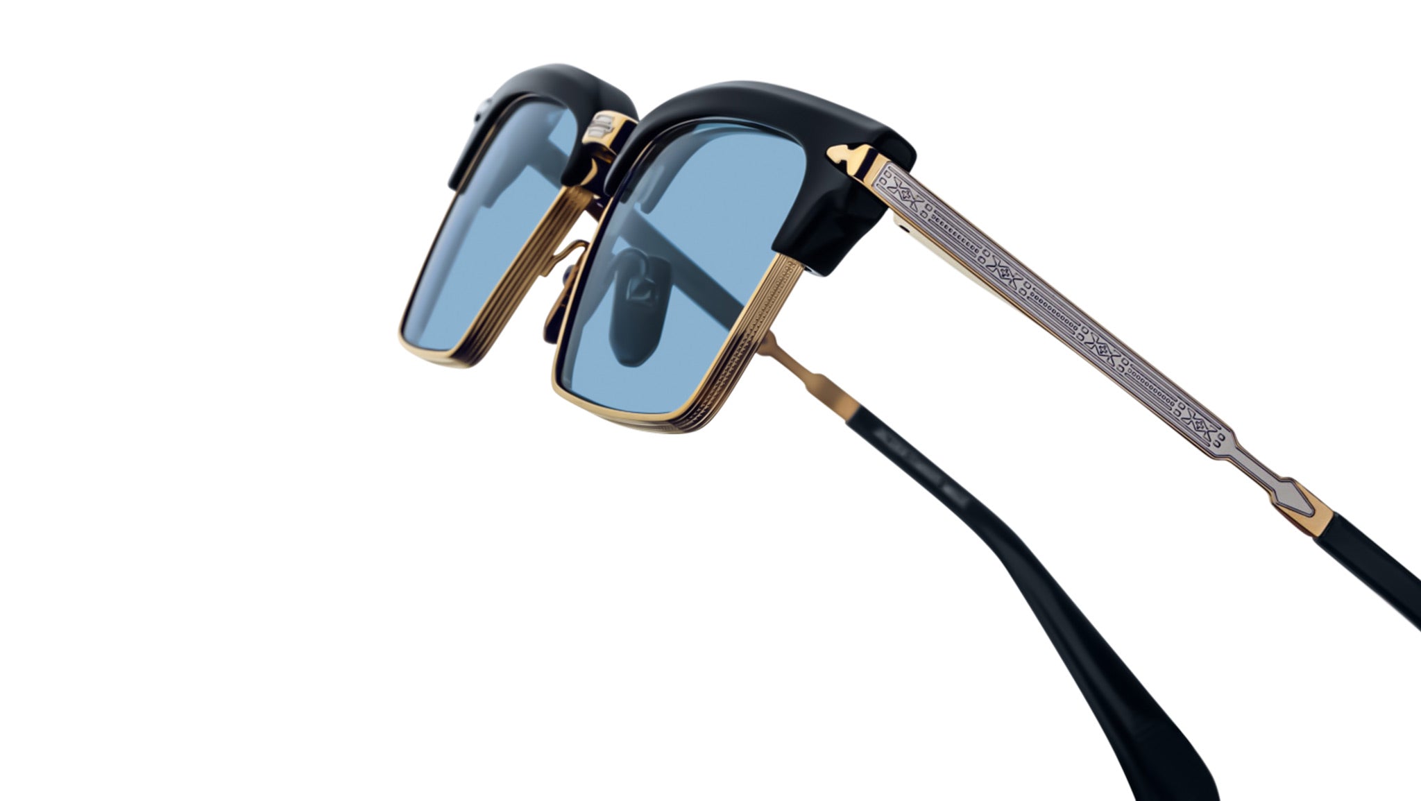 The Alin by Jacques Marie Mage are a refined nod to classic '50s style, combining a bold acetate brow with a sleek square titanium lens rim. Featuring the brand's signature arrowhead monoblock hinge and finely engraved temples with a distinctive arrowhead motif, these spectacles embody sophistication and craftsmanship. Designed for those who appreciate timeless elegance, they offer a perfect balance of vintage inspiration and modern ambition.