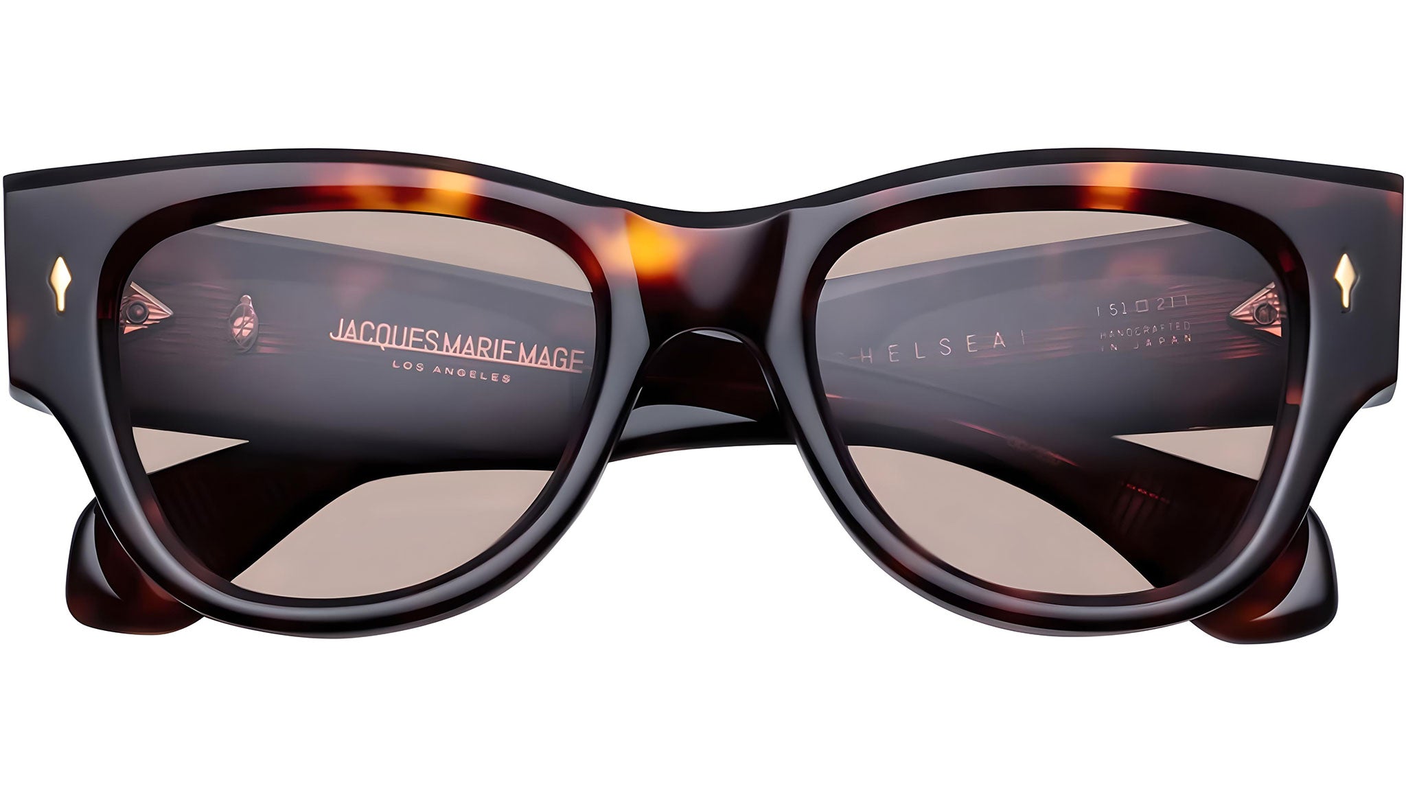 Chelsea by Jacques Marie Mage: classic sculptural design meets bold sophistication in these soft Panto-shaped spectacles. Featuring oversized temples with new 7-barrel hinges and 'Cantilever' wirecores adorned with signature hairline details, the Chelsea balances sharp lines with sleek curves. A chiseled expression of modern artistry, these frames exude a confident, bohemian spirit while offering unparalleled comfort and style.