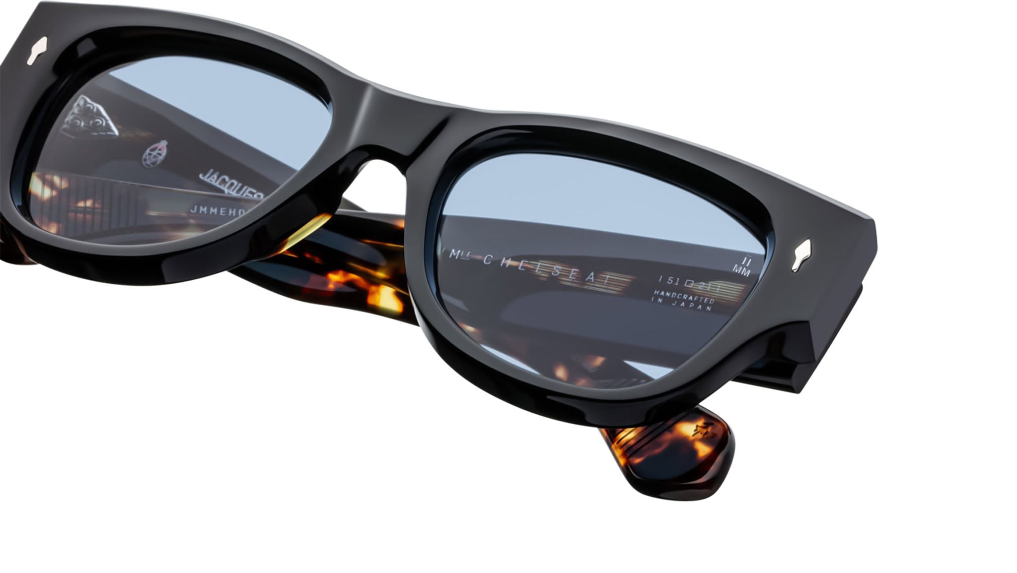 Chelsea by Jacques Marie Mage: classic sculptural design meets bold sophistication in these soft Panto-shaped spectacles. Featuring oversized temples with new 7-barrel hinges and 'Cantilever' wirecores adorned with signature hairline details, the Chelsea balances sharp lines with sleek curves. A chiseled expression of modern artistry, these frames exude a confident, bohemian spirit while offering unparalleled comfort and style.