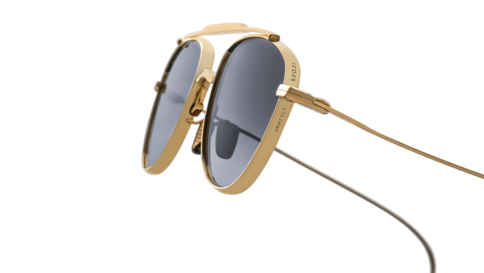 Flynn by JMM: Compact titanium pilot aviators, blending lightweight design with timeless sophistication. Featuring an elegant double-bridge and signature hand-painted epoxy temple tips, these handcrafted spectacles exude a refined charisma, perfect for both daring romantics and heroic trailblazers.