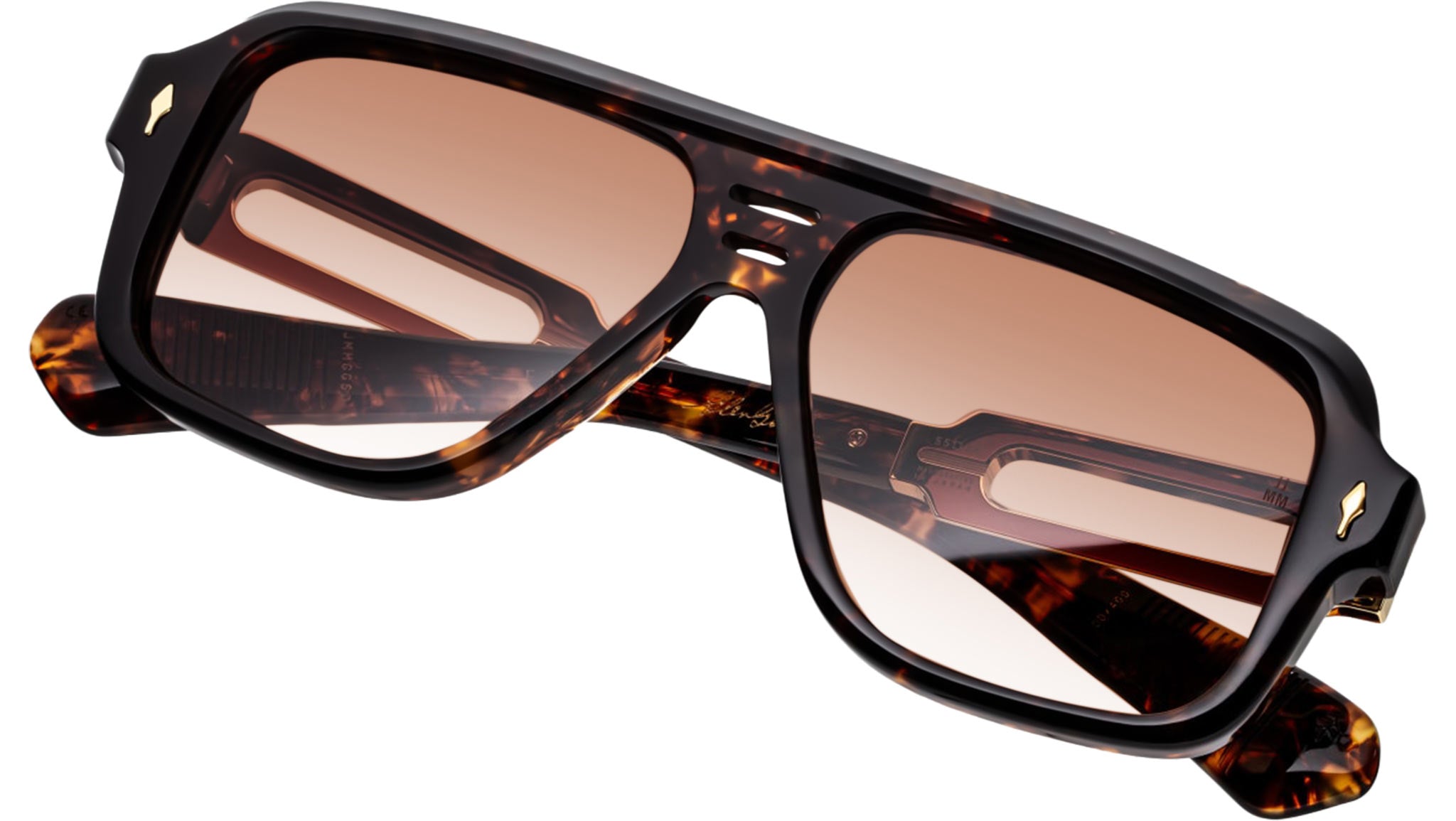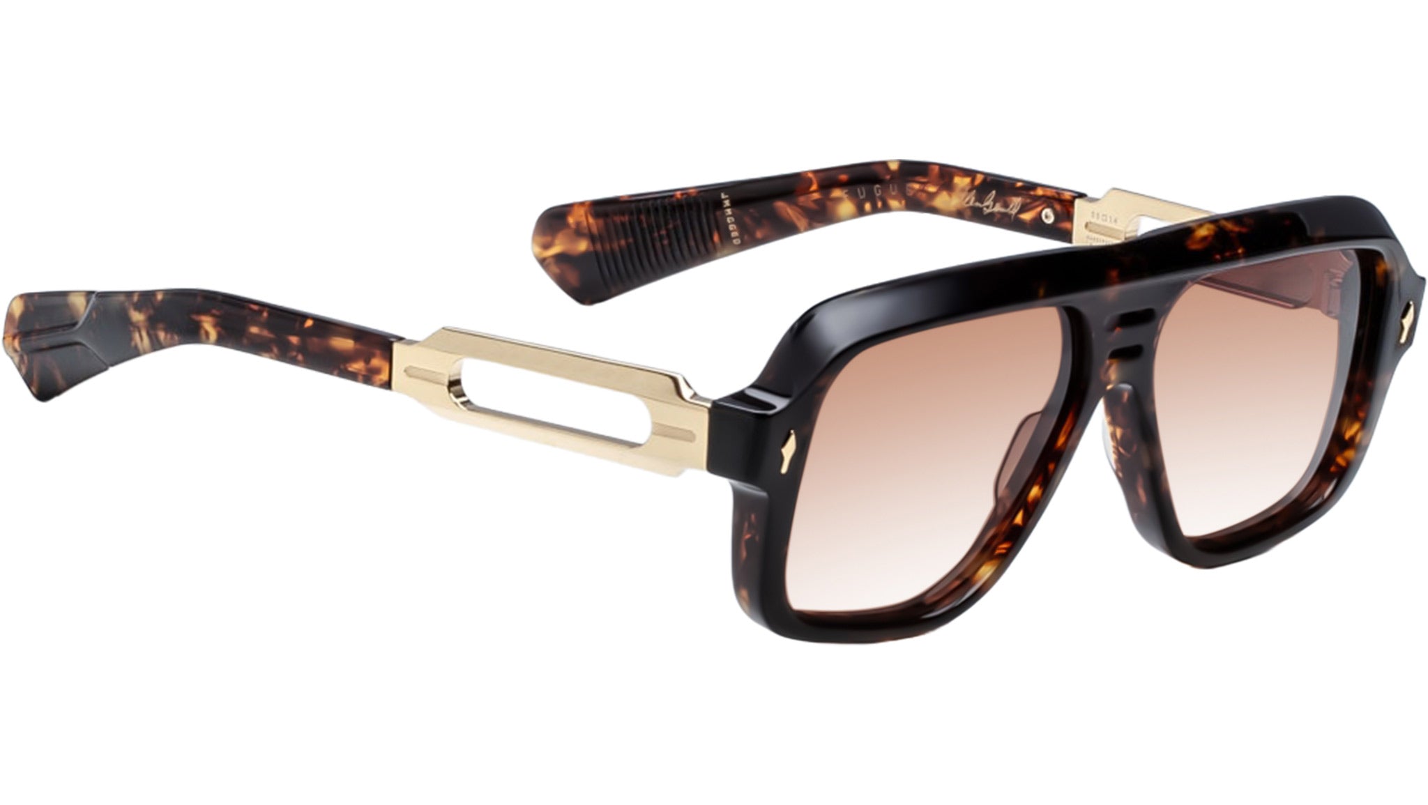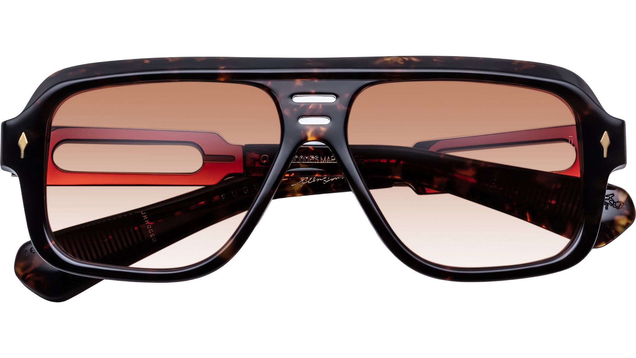 Jacques Marie Mage Fugue sunglasses are elevated, ’60s-inspired combo navigators from the Glenn Gould by JMM collection, meticulously handcrafted in Japan. This limited-edition design features a distinctive plant-based acetate double bridge, 100% beta titanium cut-out temples with acetate tips, and signature precious metal details, including arrowhead front pins and custom monoblock hinges. A refined tribute to the artistry and individuality of pianist Glenn Gould, these frames balance timeless elegance with a touch of eccentricity.
