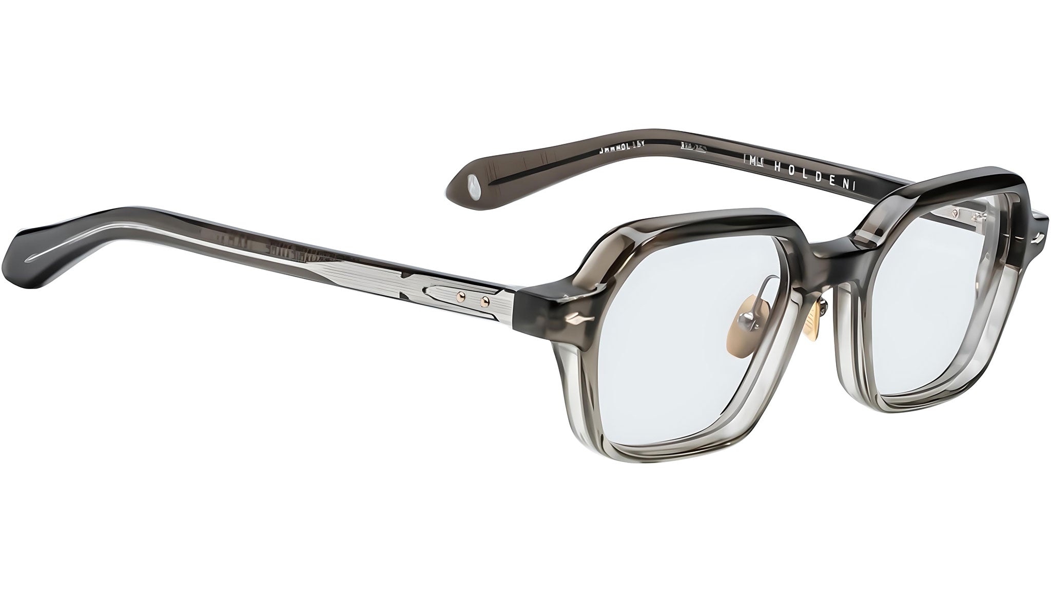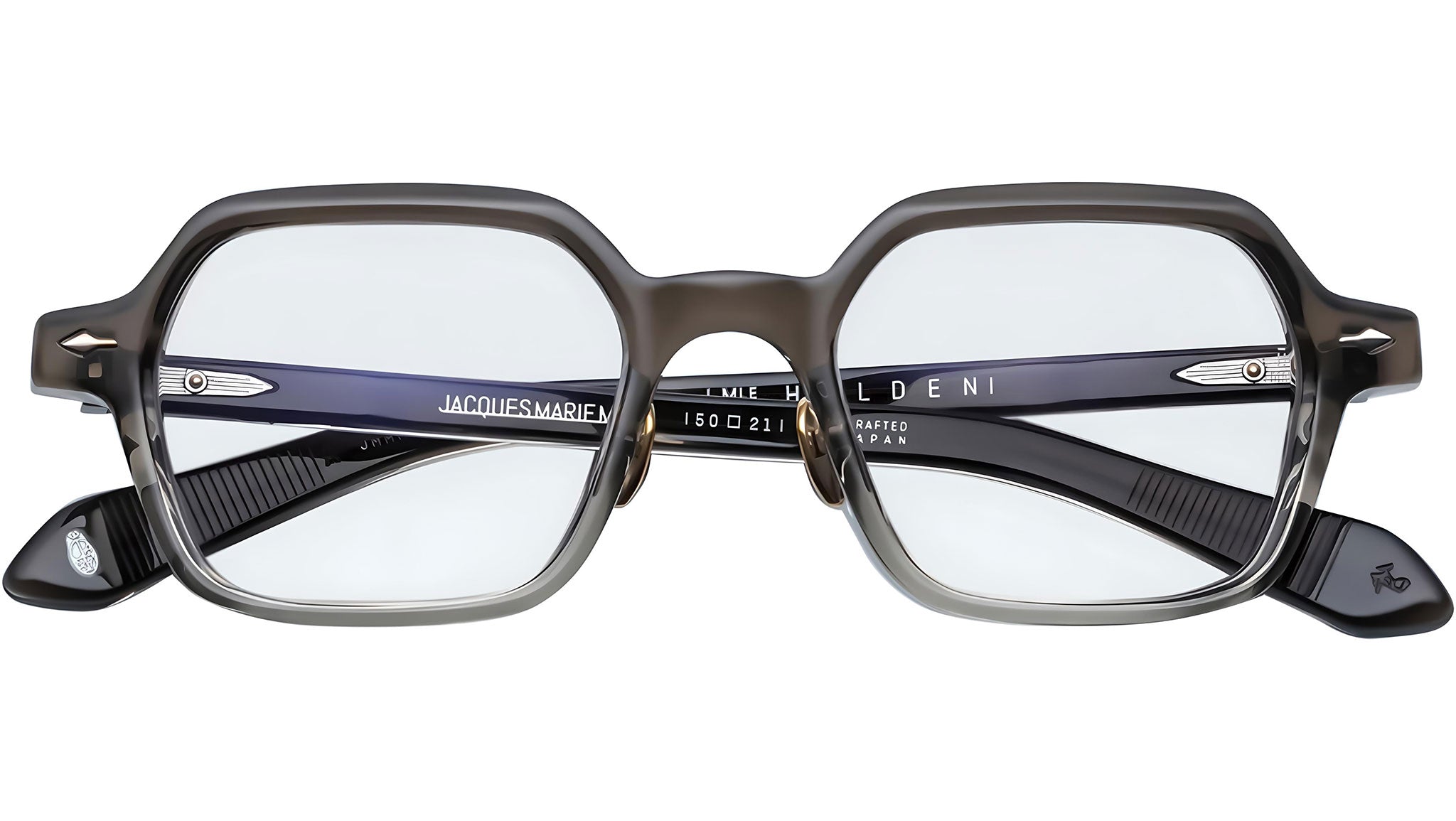 The Jacques Marie Mage Holden RX opticals are a striking and balanced design, featuring alluring hexagonal angles and crafted with meticulous attention to detail. These frames showcase the signature monoblock hinge, titanium nose pads, and 'Blow-dart' wirecores with dramatic hairline engravings. Perfect for those who embrace creativity and bold expression, the Holden RX invites you to explore color, perspective, and the art of living, blending form and function into a celebration of individuality and natural beauty.