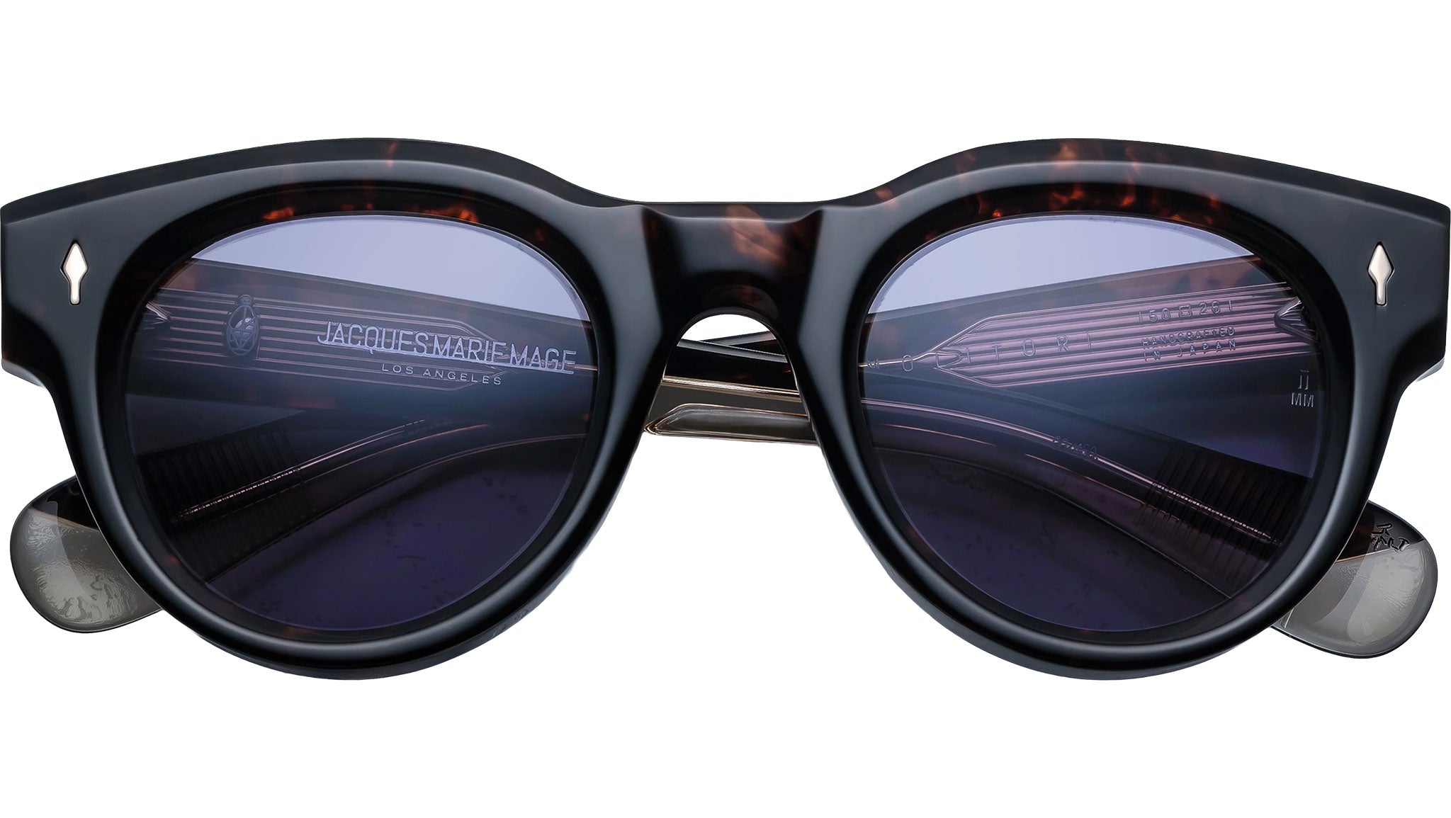 The Jacques Marie Mage Molitor sunglasses are boldly balanced, limited-edition spectacles designed with a medium fit, showcasing a harmonious blend of form and function. Crafted with custom 7-barrel hinges and signature polished metal details, the frame features exposed ‘Classic’ wirecores that highlight the meticulous construction and refined aesthetic synonymous with the brand's elevated design ethos.