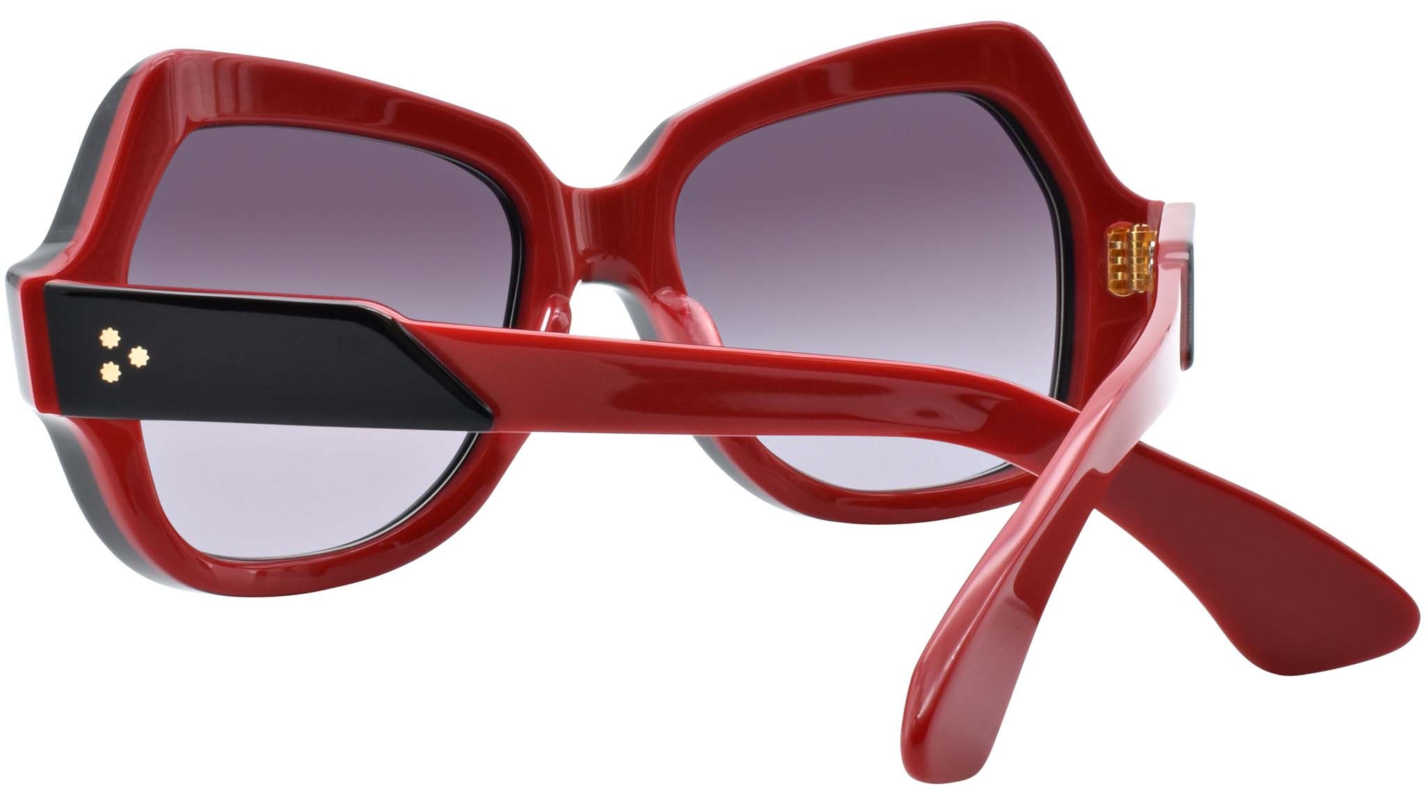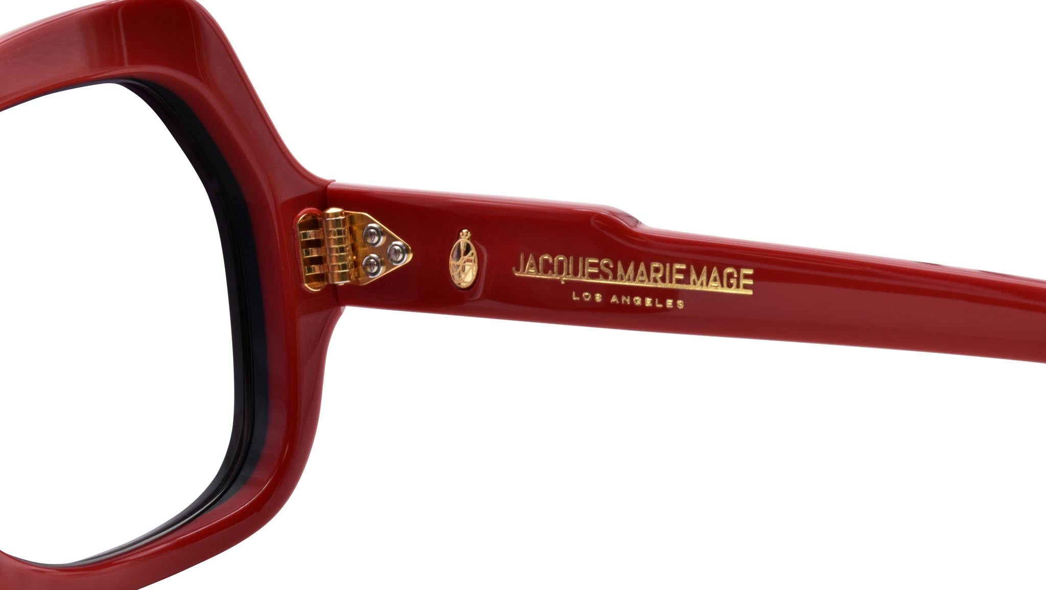 Presenting the Jacques Marie Mage Perreti sunglasses - sculpted and balanced eyewear that makes a compelling statement. Their design is centered around a soft lens shape, pronounced brow line, and low-set temples, all accentuated by the brand's signature double-arrowhead pins. What appears to be an aesthetic jewel, in essence, is a finely crafted sculpture that has been transformed into a striking pair of limited-edition glasses. Their expressive shape and confident profile offer a distinctive perspective for the ambitious professionals of today.