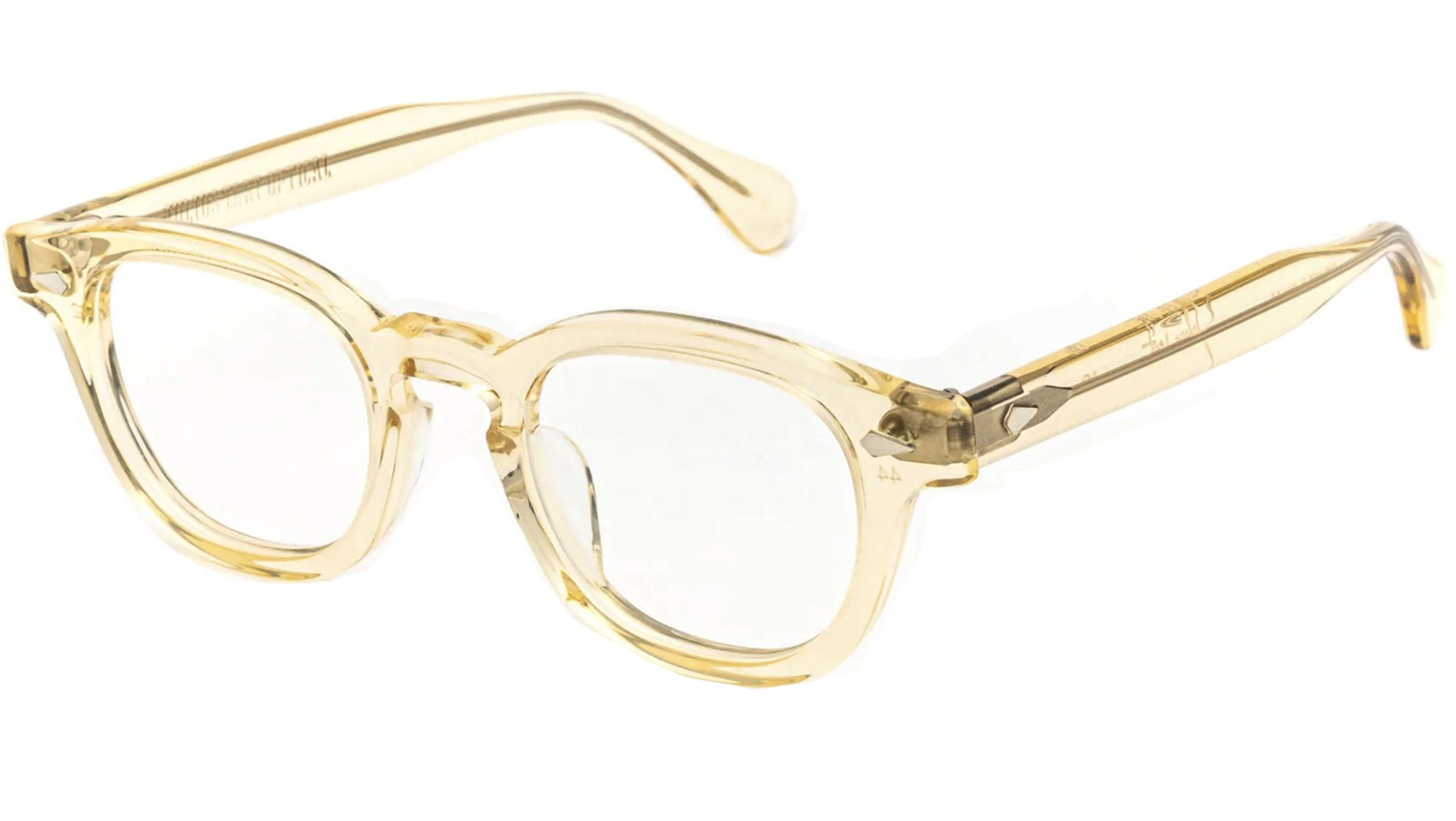 Un modello iconico nella storia degli occhiali: la montatura da vista AR nella variante color champagne di Julius Tart Optical Enterprise è disponibile in quattro larghezze delle lenti e due misure di ponte. Gli AR da 44 a 48 sono disponibili in due diverse dimensioni del ponte, 22 e 24. Realizzati a mano in Giappone dal miglior acetato giapponese Takiron.