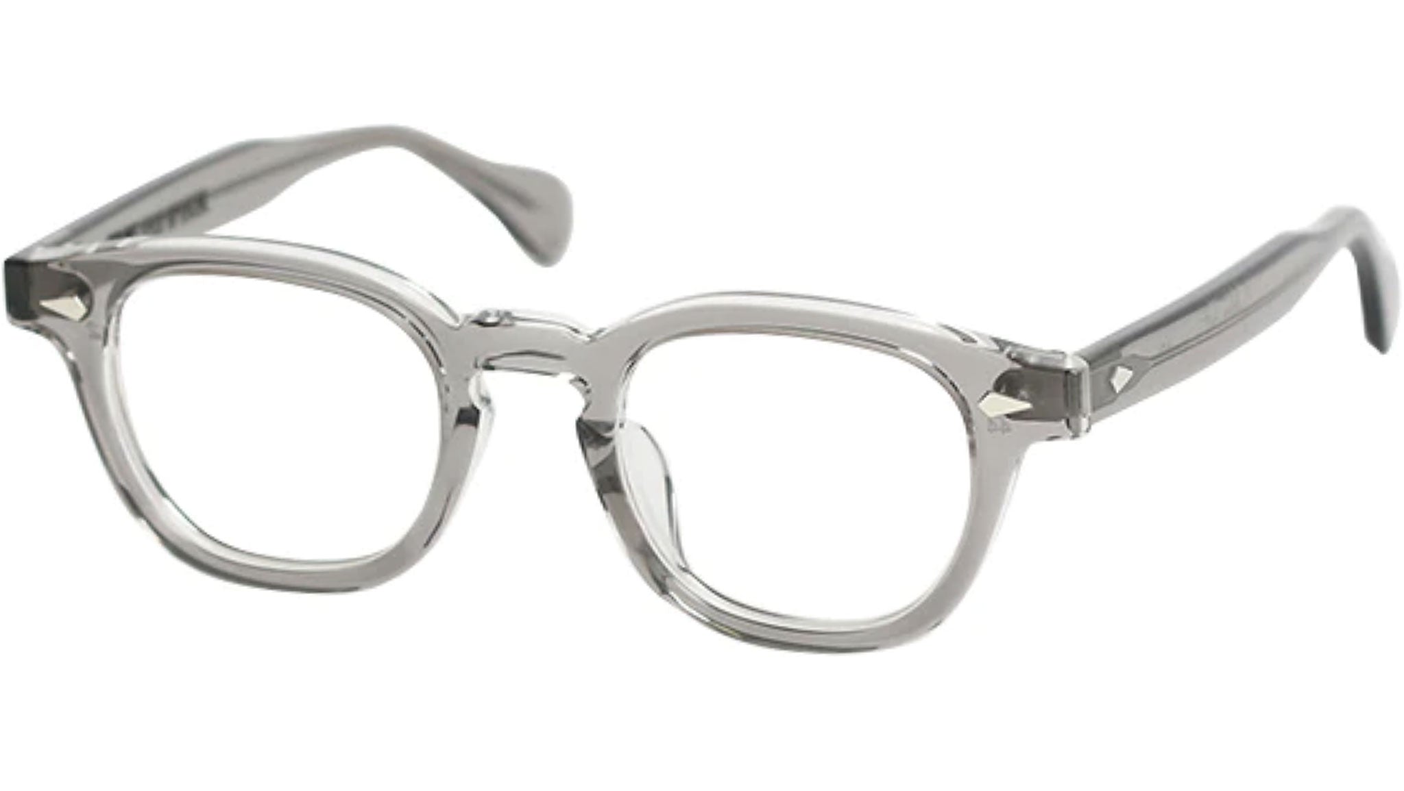 Un modello iconico nella storia degli occhiali: la montatura da vista AR nella variante grigio trasparente chiaro di Julius Tart Optical Enterprise è disponibile in quattro larghezze delle lenti e due misure di ponte. Gli AR da 44 a 48 sono disponibili in due diverse dimensioni del ponte, 22 e 24. Realizzati a mano in Giappone dal miglior acetato giapponese Takiron.