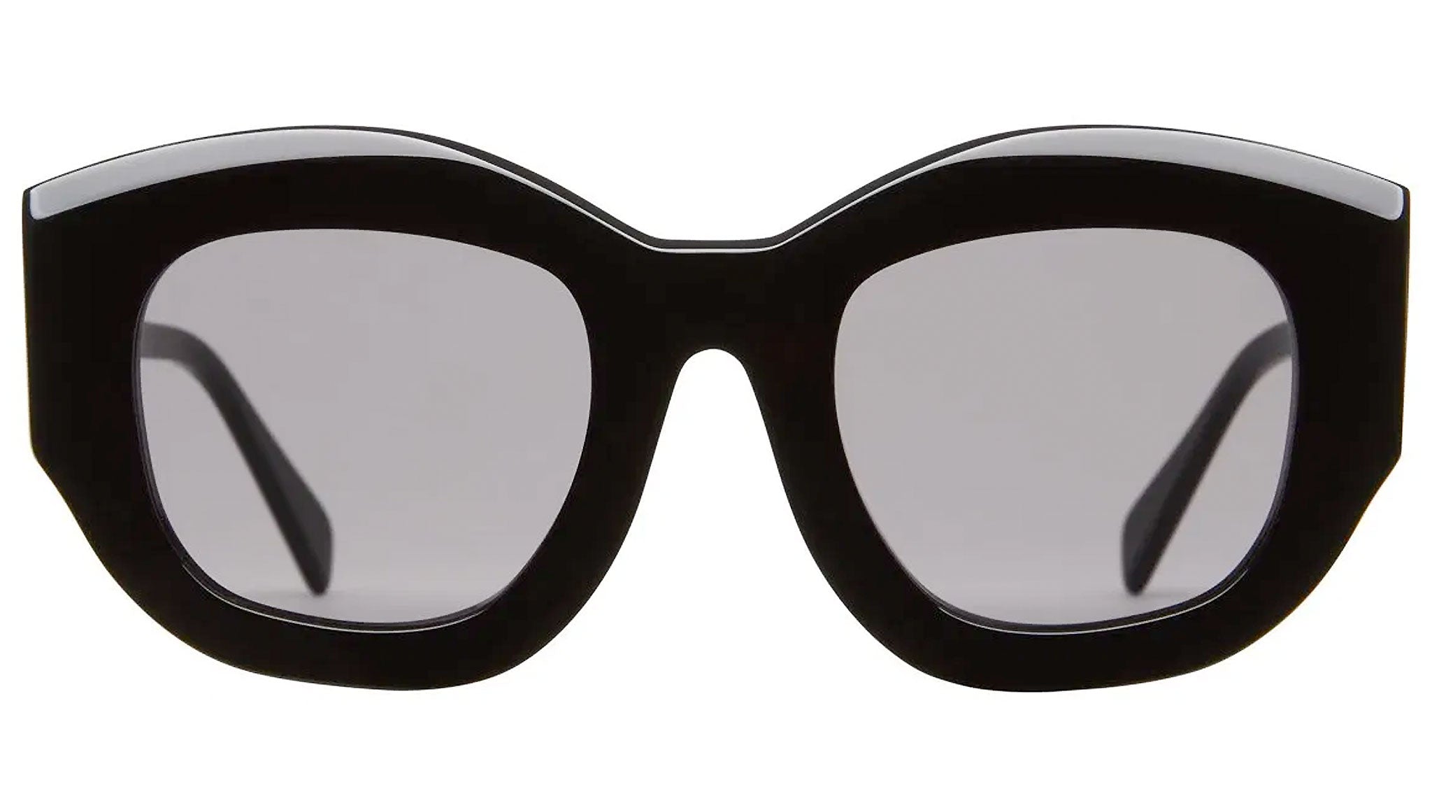 Kuboraum are masks that are designed on the face of its wearers to highlight their personality and character. Mask is synonymous with mockery and game. Kuboraum masks are synonymous with protection and shelter; they are cubical rooms where we shelter ourselves, free to live our intimacy and look at the world through two lenses. All masks are entirely dreamed in Berlin and handmade in Italy. B5 is a square frame shape made with Mazzucchelli acetate 100% made in Italy. Black frame with solid grey lens.