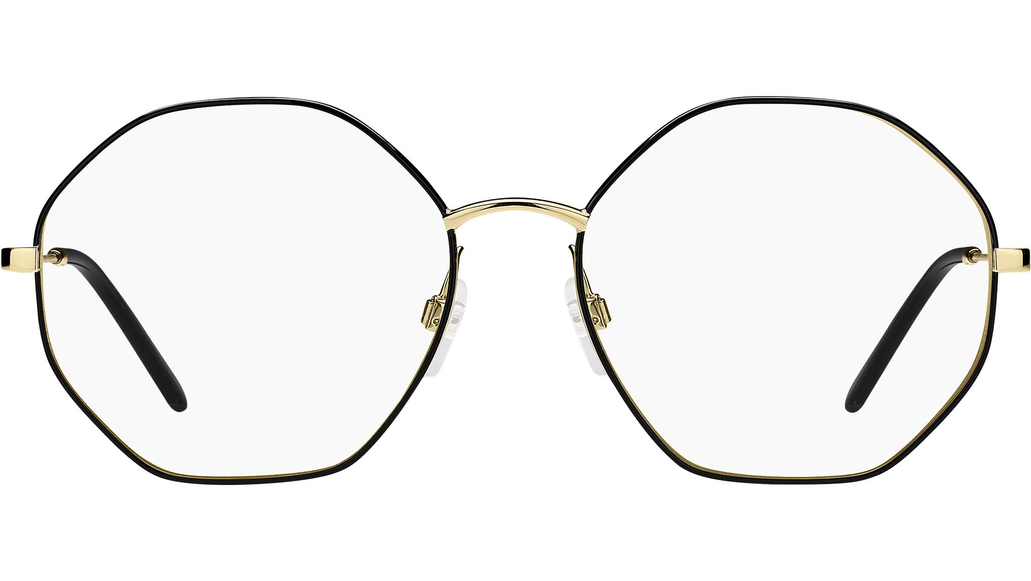 Occhiali da vista Marc Jacobs modello MARC 622 codice colore RHL in metallo oro nero con lenti demo. Al tempo stesso eleganti e innegabilmente cool, questi occhiali da vista da donna conquisteranno anche le amanti della moda più esigenti. La delicata montatura esagonale dagli angoli stondati dona a qualsiasi viso, mentre le aste piatte in metallo incise con il logo The Marc Jacobs ne esaltano il fascino glamour. A completare il modello, un leggero tocco di colore sui terminali. Rivenditore autorizzato online Marc Jacobs.