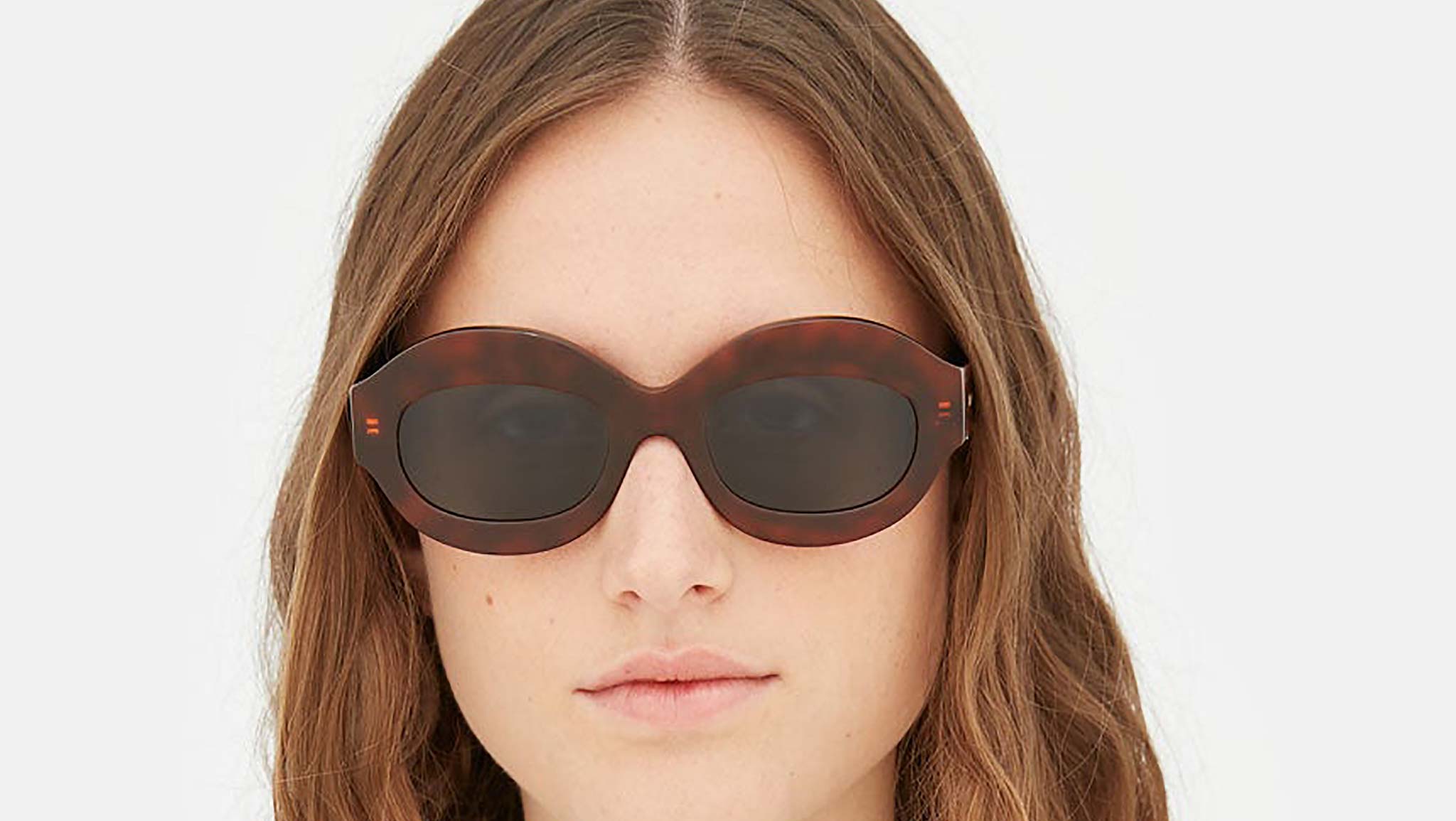 Designed exclusively for Marni, this is an oversized shape characterised by bold acetate construction and an iconic rounded geometry. Inspired by playful vintage designs, Ik Kil Cenote pushes the boundaries of contemporary eyewear with its exceptionally chunky rims encasing oval lenses to form a distinctive rounded form. This is a forward-looking piece of eyewear for those open to experimenting with style. The model comes with blonde Havana acetate and smoky black lenses. Sizes: R / R Lens Width: 54 mm. Frame Front: Frame Side: 145 mm. Product Code Size R: JAL Product Code Size R: 8P7