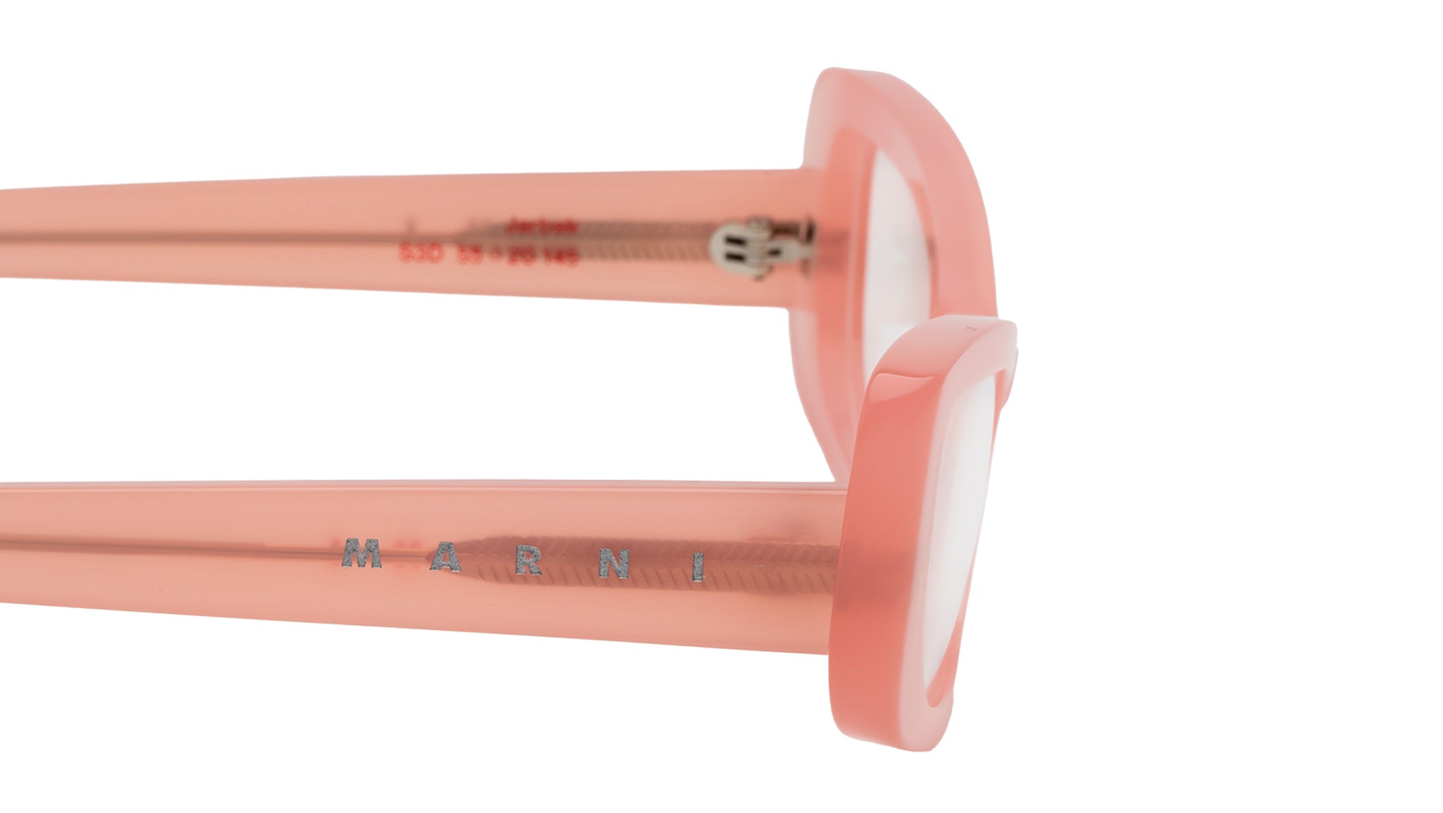 Montatura per occhiali da vista Marni Jarbek Pink con montatura in acetato rosa e lenti color lenti demo. Codice modello: S3D. Made in Italy. Rivenditore autorizzato Marni online. Gli occhiali vengono consegnati con custodia e accessori originali e sono coperti dalla garanzia ufficiale di 12 mesi del produttore.