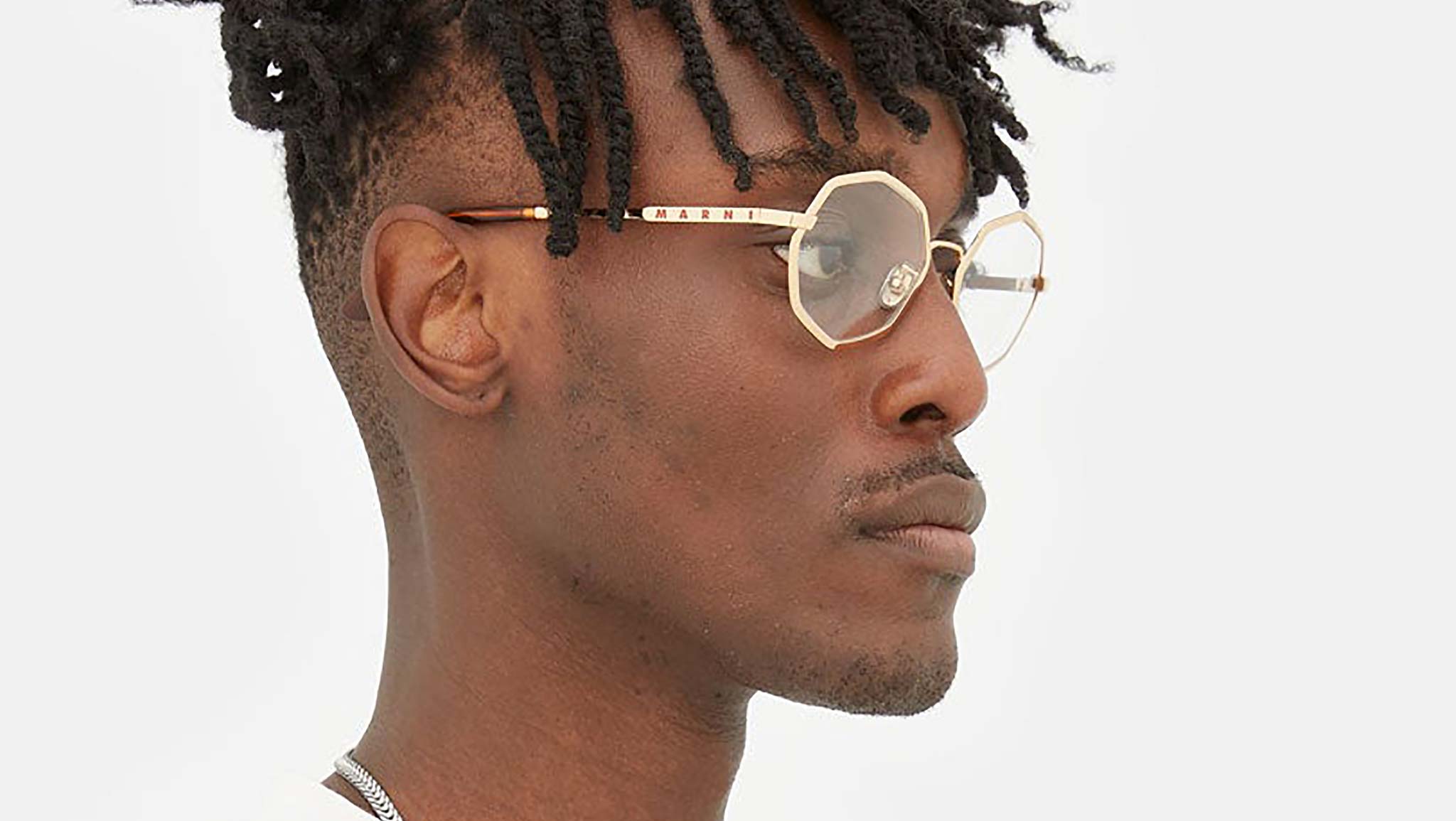 Designed exclusively for Marni, Pulpit Rock is a playful metal silhouette that reinterprets 1970s eclecticism for the 21st century. This oversized shape features octagonal metal rims, fitted for lightweight everyday use. This model matches edginess with wearability for a high-end result with a gold metal finish. Sizes: R Lens Width: 55 mm. Frame Front: Frame Side: 145 mm. Product Code Size R: 5O5