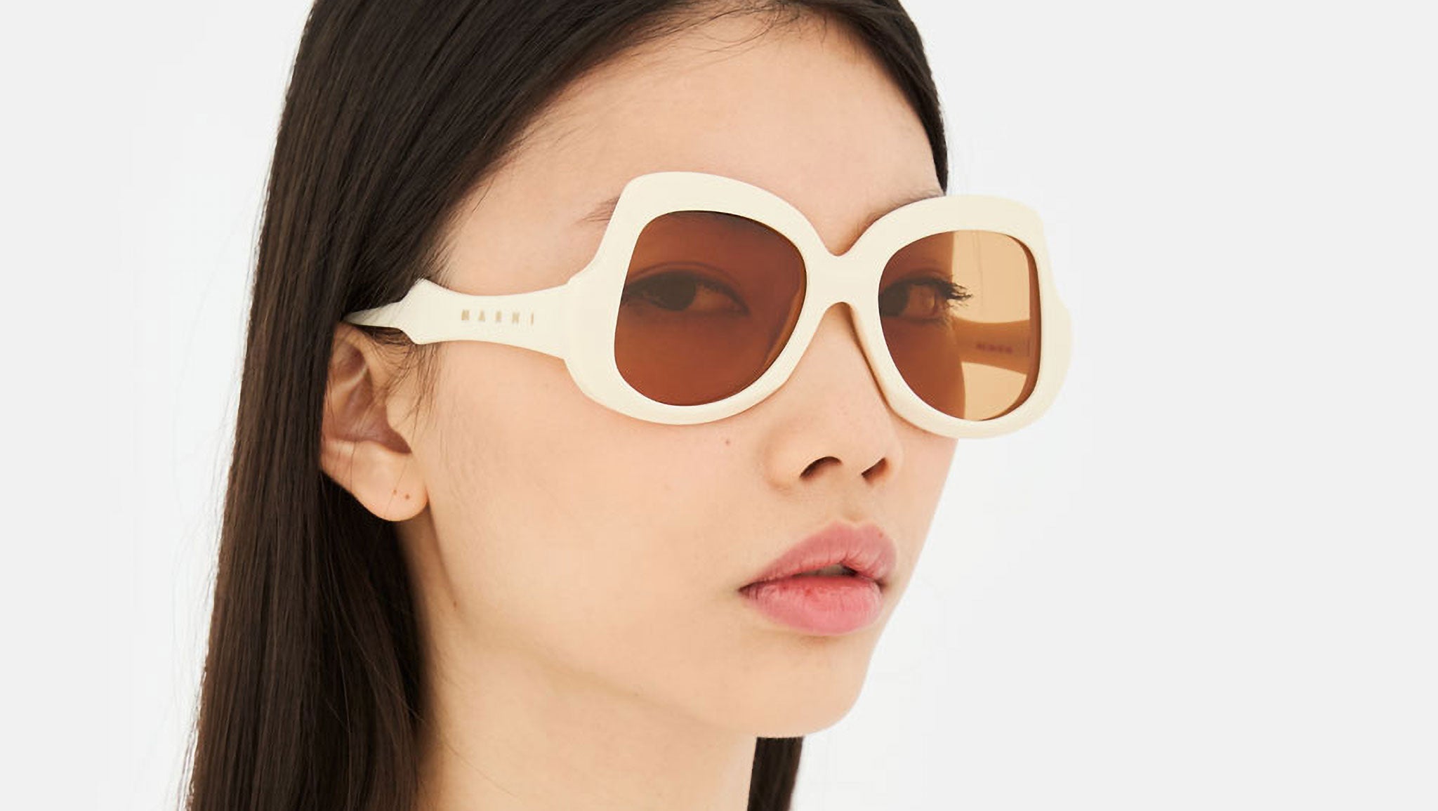 Occhiali da sole Marni Quelyfish Cream con montatura in acetato crema e lenti color refined. Codice modello: KHO. Made in Italy. Rivenditore autorizzato Marni online. Gli occhiali vengono consegnati con custodia e accessori originali e sono coperti dalla garanzia ufficiale di 12 mesi del produttore.