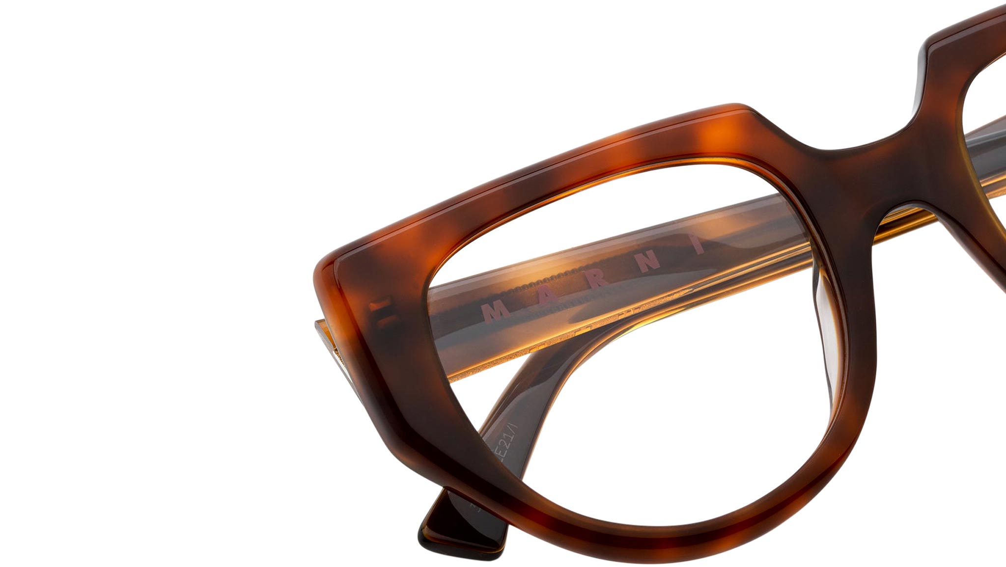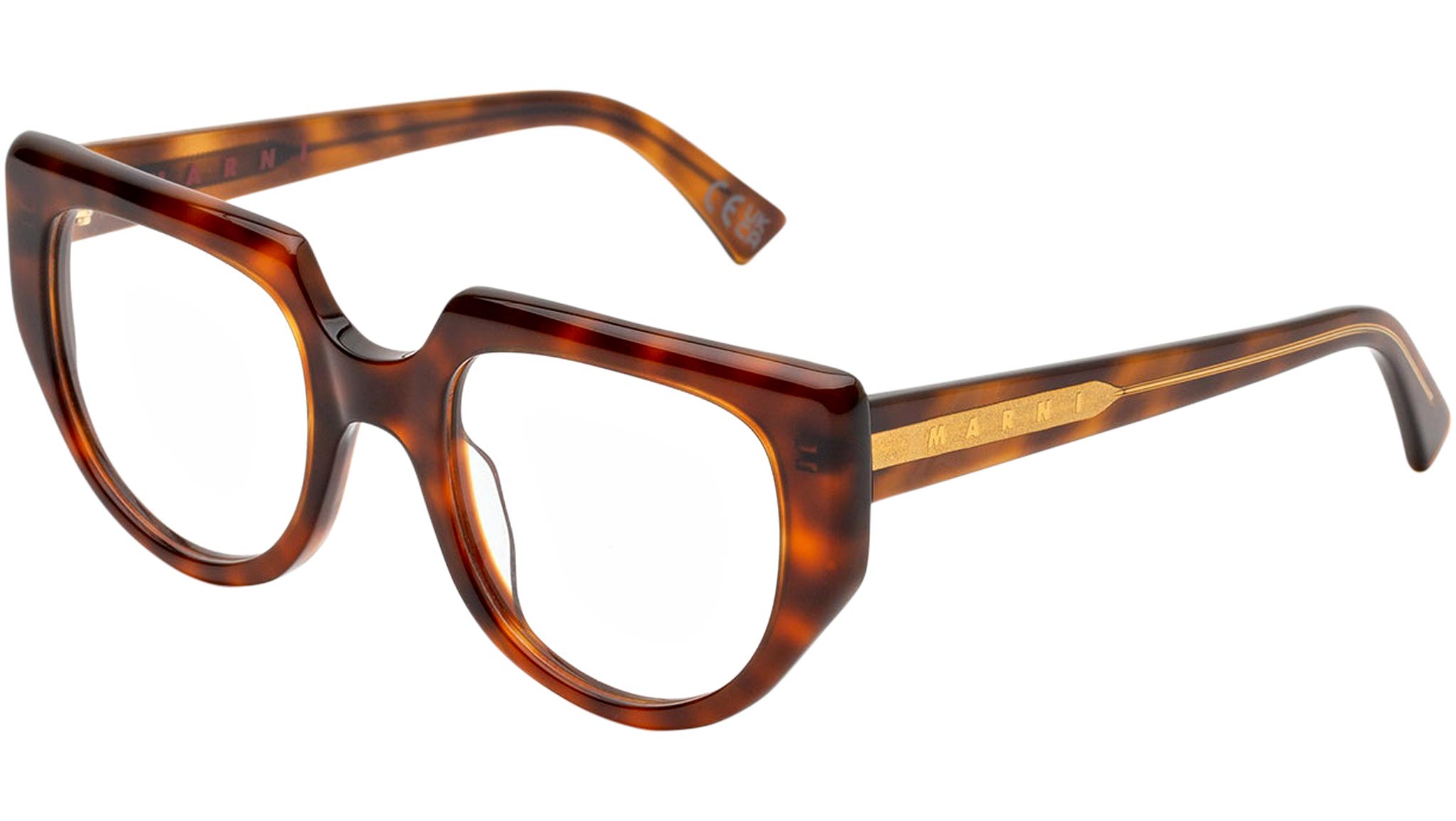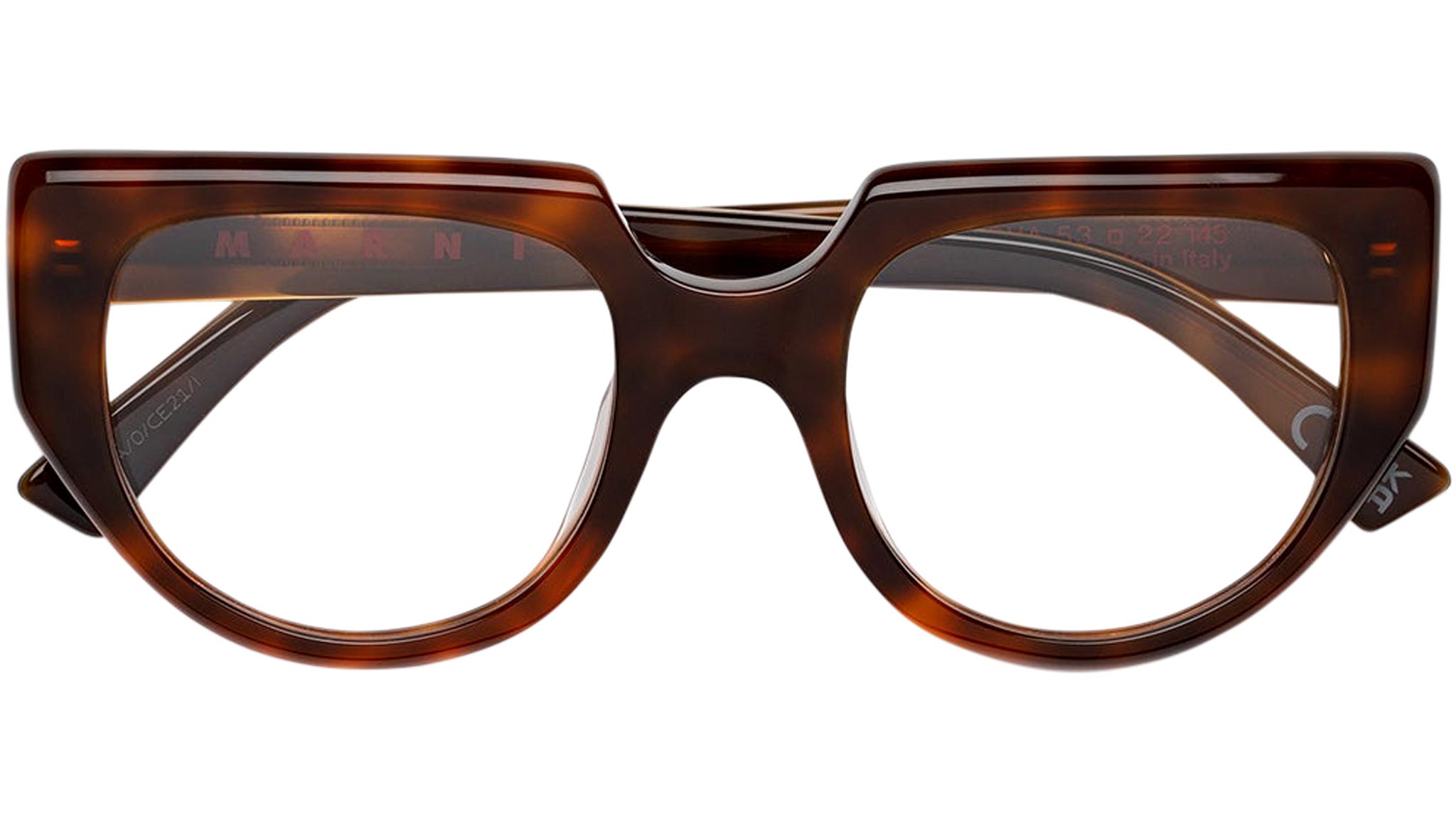 Low bridge fit. Designed exclusively for Marni, Uluru is a sturdy Optical silhouette characterised by unique geometries and asymmetrical design features. The model blends squared detailing with carefully rounded curves for an innovative aesthetics. Different thicknesses are placed in strategic areas for extra strength, a strong brow-piece is matched by slender rims on the lower part of the frame. This is a sophisticated model that captures Marni’s quirky approach to style. This version is available in a warm Blonde Havana acetate. Sizes: R / RLens Width: 53 mmFrame Front: Frame Side: 145 mmProduct Code Size R: 3VAProduct Code Size R: PC0