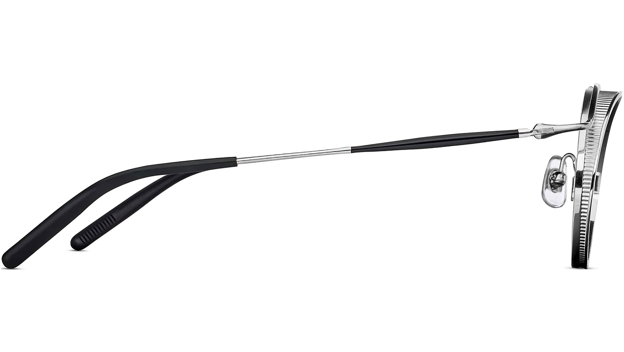 A striking round creation with strong architectural lines, exuding an industrial feel. Ribbed detailing, visors, and an elegant lacquered top bar all lend a nod to the Machine Era of the early 20th century. Lightweight titanium construction. Hand applied lacquer. Precious metal finishing. Made in Japan.