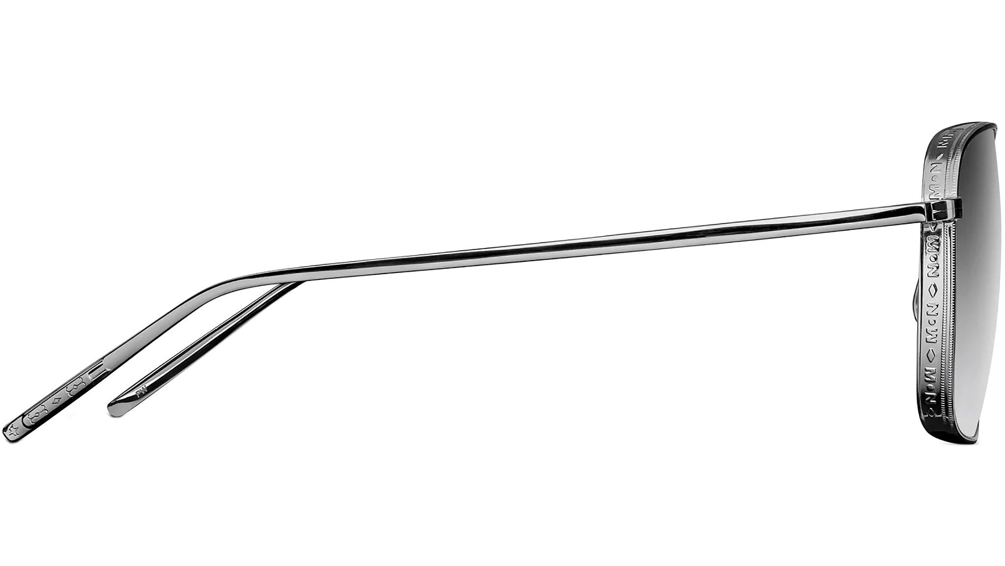 Con il modello M3099 Matsuda interpreta una rivisitazione moderna della forma navigator, realizzata in titanio di alta qualità. La montatura a cerchio largo include la firma di Matsuda "M+N" lungo il cerchio e le opzioni di finitura includono un rivestimento ionico PVD nero, originariamente sviluppato per l'industria aerospaziale.