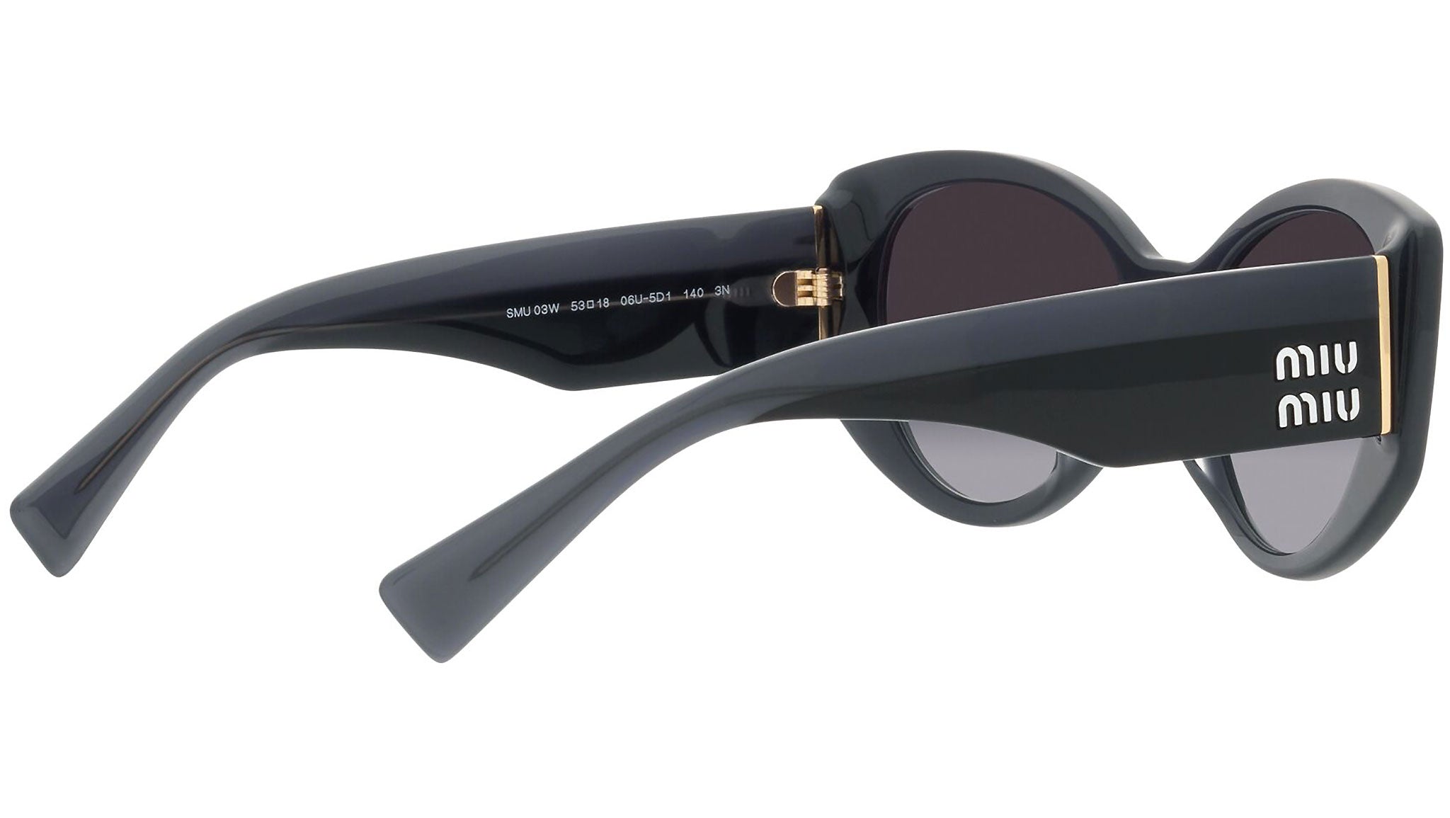 Occhiali da sole Miu Miu modello MU 03WS variante colore 06U5D1 grigio opalino, con lenti color grigio sfumato. Miu Miu offre creazioni uniche, in cui la costante ricerca stilistica si combina perfettamente con la maestria artigianale della lavorazione. Le silhouette femminili e sinuose delle montature sono espressione di una ricchezza dei dettagli che rispecchia pienamente i codici stilistici e l’indiscusso talento del brand nell’unire il design non convenzionale ad un romanticismo dai rimandi retrò.