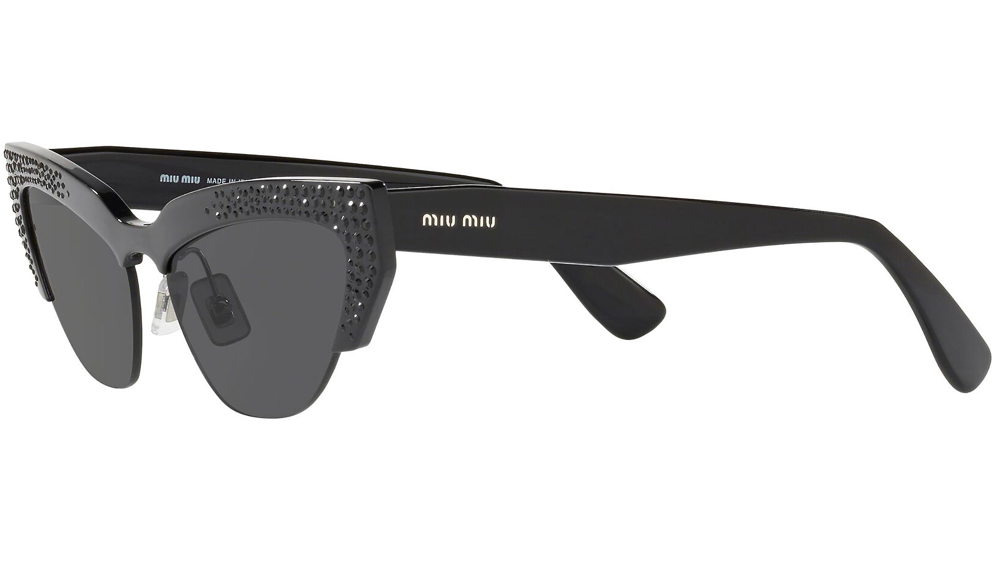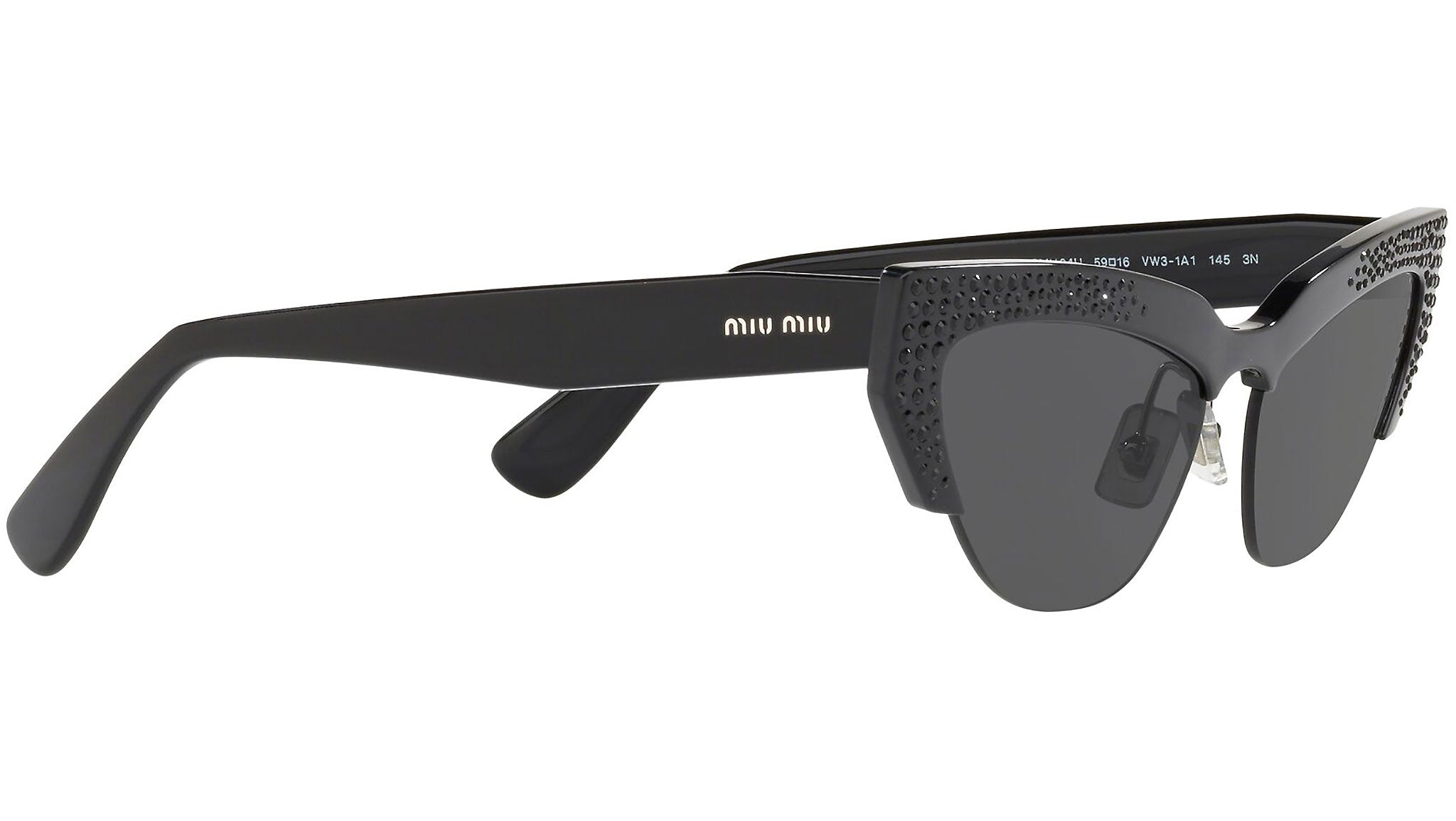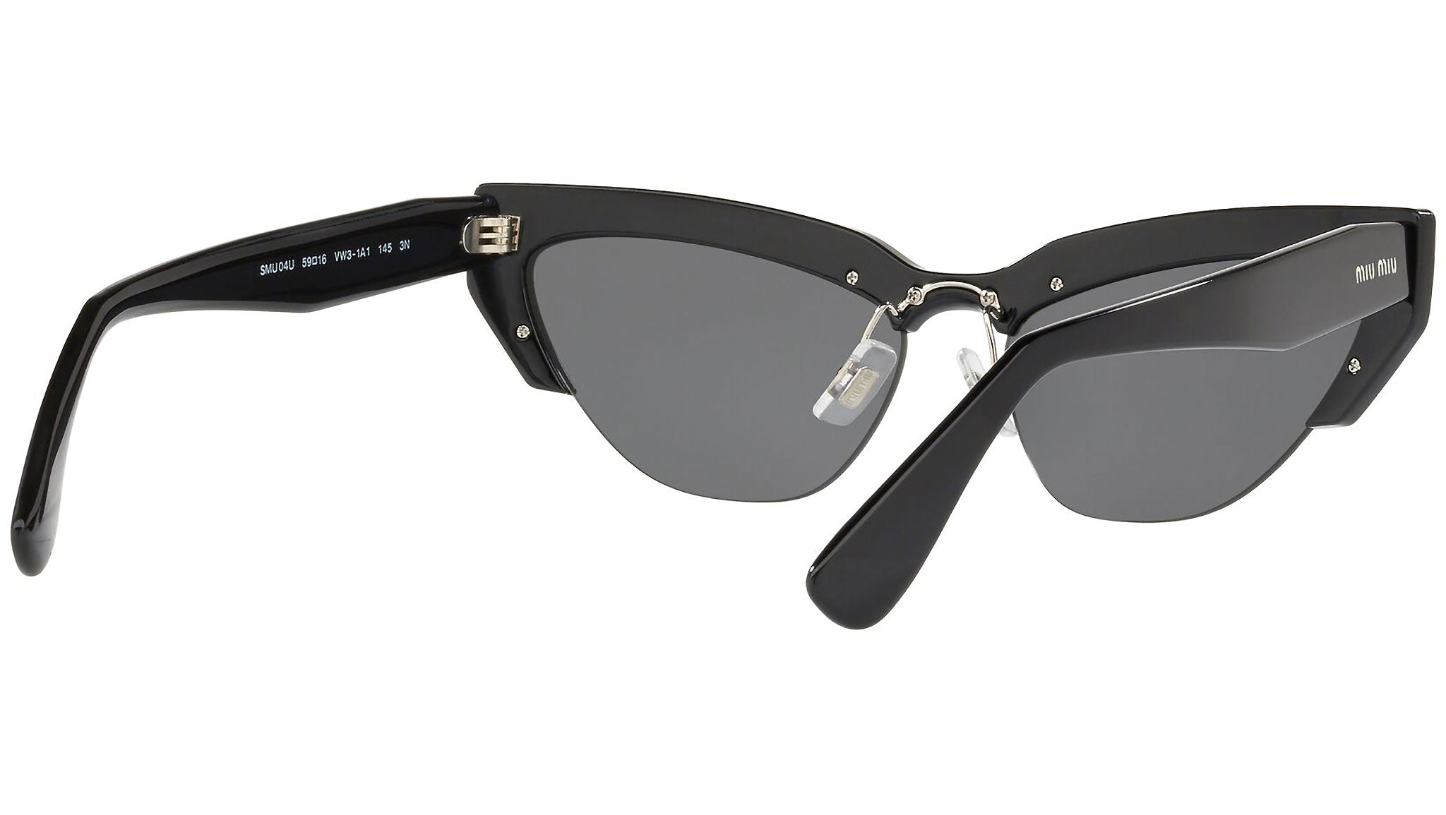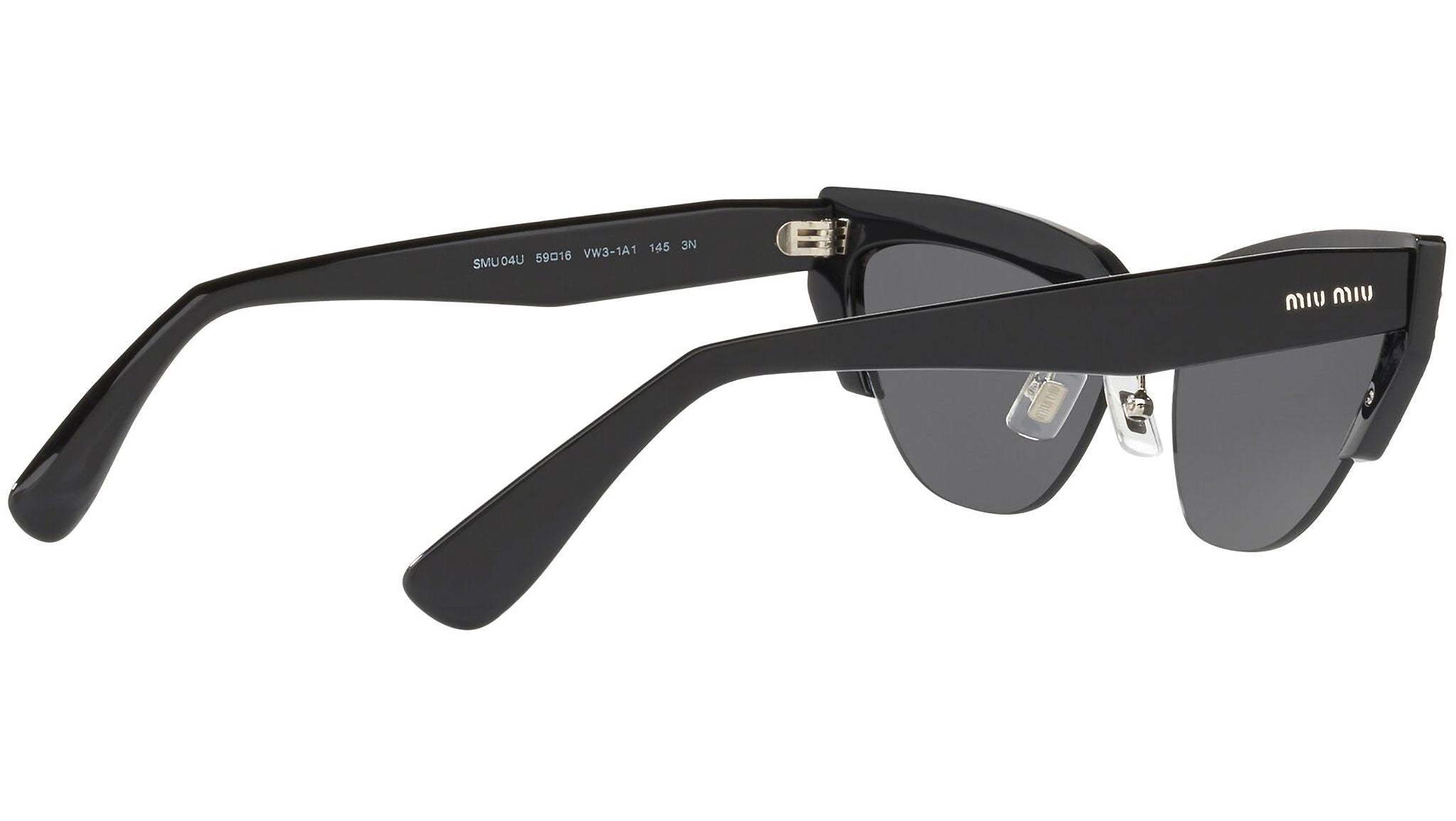Occhiali da sole Miu Miu modello MU 04US variante colore VW31A1 nero, con lenti color grigio. Miu Miu offre creazioni uniche, in cui la costante ricerca stilistica si combina perfettamente con la maestria artigianale della lavorazione. Le silhouette femminili e sinuose delle montature sono espressione di una ricchezza dei dettagli che rispecchia pienamente i codici stilistici e l’indiscusso talento del brand nell’unire il design non convenzionale ad un romanticismo dai rimandi retrò.
