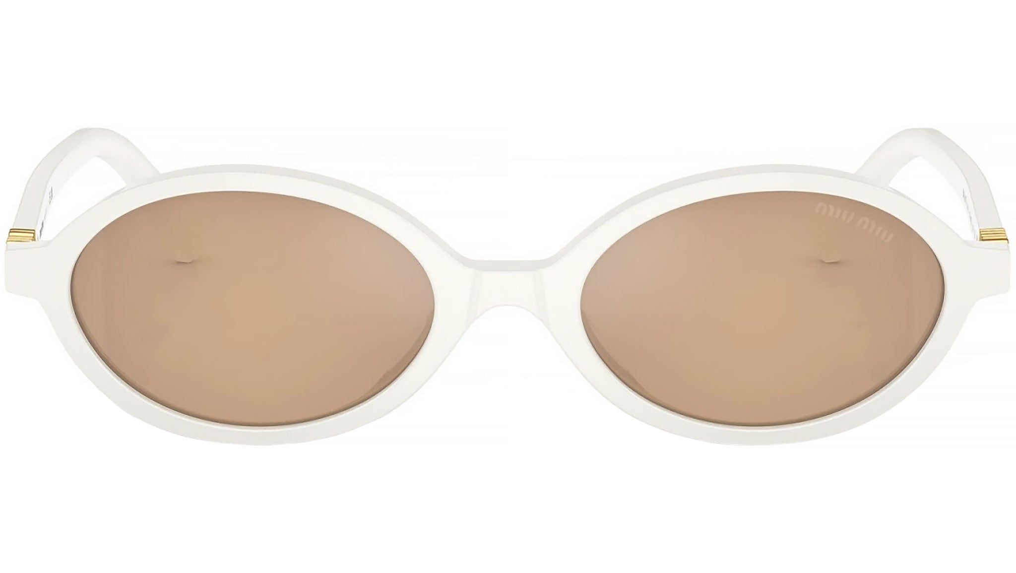 Occhiali da sole Miu Miu modello MU 04ZS codice colore 14240D in acetato bianco con lenti arancione specchiato argento. Miu Miu offre creazioni uniche, in cui la costante ricerca stilistica si combina perfettamente con la maestria artigianale della lavorazione. Le silhouette femminili e sinuose delle montature sono espressione di una ricchezza dei dettagli che rispecchia pienamente i codici stilistici e l’indiscusso talento del brand nell’unire il design non convenzionale ad un romanticismo dai rimandi retrò.