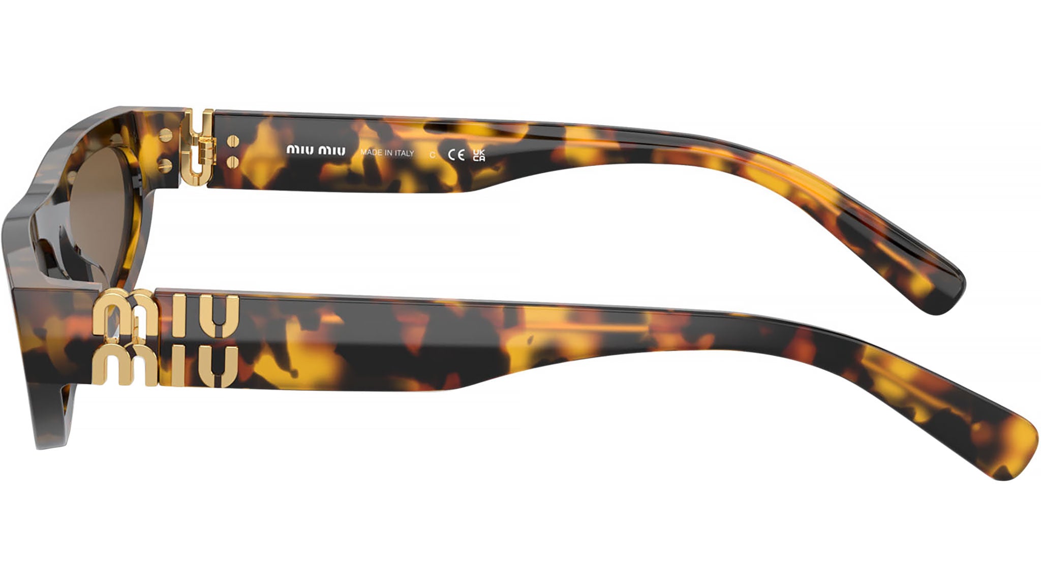 Occhiali da sole Miu Miu modello MU 07ZS codice colore VAU06B in acetato miele havana con lenti marrone scuro. Miu Miu offre creazioni uniche, in cui la costante ricerca stilistica si combina perfettamente con la maestria artigianale della lavorazione. Le silhouette femminili e sinuose delle montature sono espressione di una ricchezza dei dettagli che rispecchia pienamente i codici stilistici e l’indiscusso talento del brand nell’unire il design non convenzionale ad un romanticismo dai rimandi retrò.