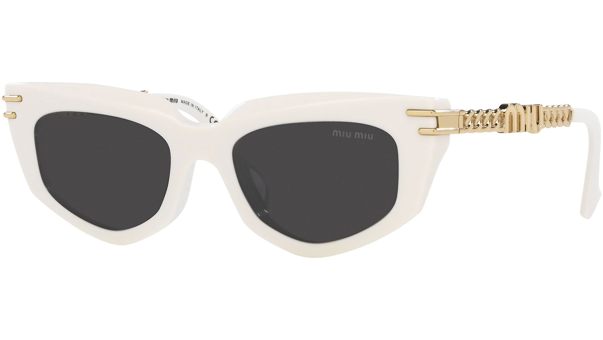 Occhiali da sole Miu Miu modello MU 70US variante colore 1425S0 bianco, con lenti color grigio scuro. Miu Miu offre creazioni uniche, in cui la costante ricerca stilistica si combina perfettamente con la maestria artigianale della lavorazione. Le silhouette femminili e sinuose delle montature sono espressione di una ricchezza dei dettagli che rispecchia pienamente i codici stilistici e l’indiscusso talento del brand nell’unire il design non convenzionale ad un romanticismo dai rimandi retrò.