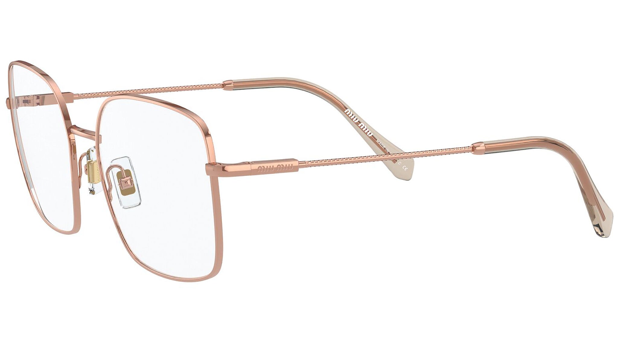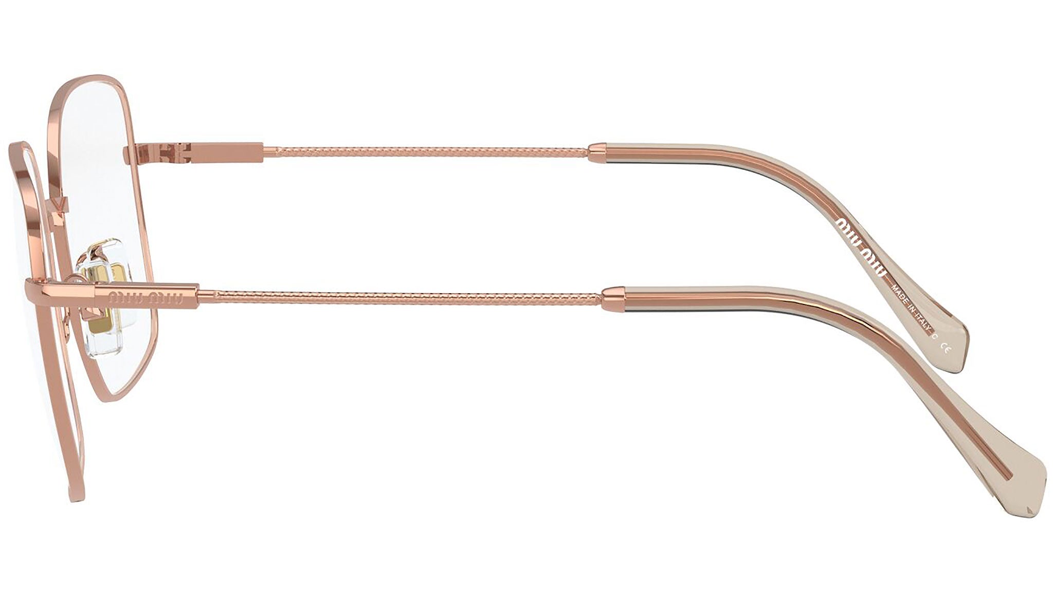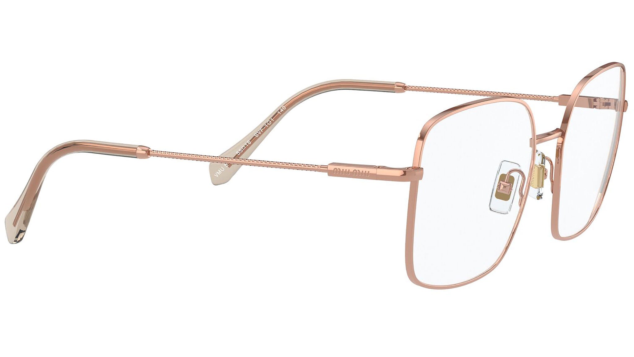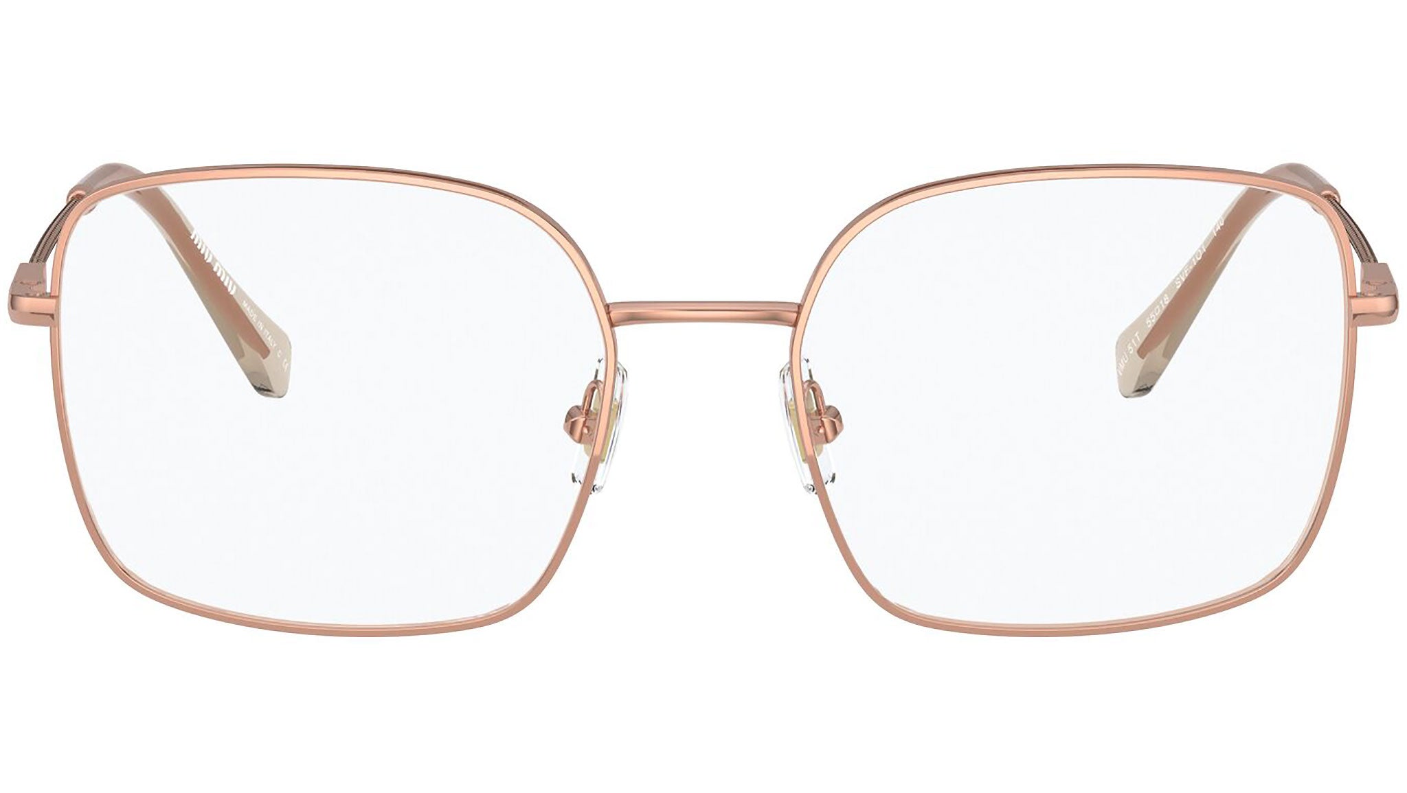 Occhiali da vista Miu Miu modello MU 51TV variante colore SVF1O1 oro rosa. Miu Miu offre creazioni uniche, in cui la costante ricerca stilistica si combina perfettamente con la maestria artigianale della lavorazione. Le silhouette femminili e sinuose delle montature sono espressione di una ricchezza dei dettagli che rispecchia pienamente i codici stilistici e l’indiscusso talento del brand nell’unire il design non convenzionale ad un romanticismo dai rimandi retrò.