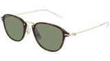 Occhiali da sole Established modello MB0155S 002, variante colore avana lucido e oro chiaro lucido con lenti color verde tinta unita. Nella sua storia, Montblanc ha rivoluzionato la cultura della scrittura, con innovazioni straordinarie. Oggi, la Maison continua a spingersi oltre i confini, progredendo nell'espressione di un artigianato raffinato, in ciascuna delle sue categorie di prodotti: ai vertici negli strumenti di scrittura di lusso, nell'orologeria, nella pelletteria, nei profumi e negli occhiali.