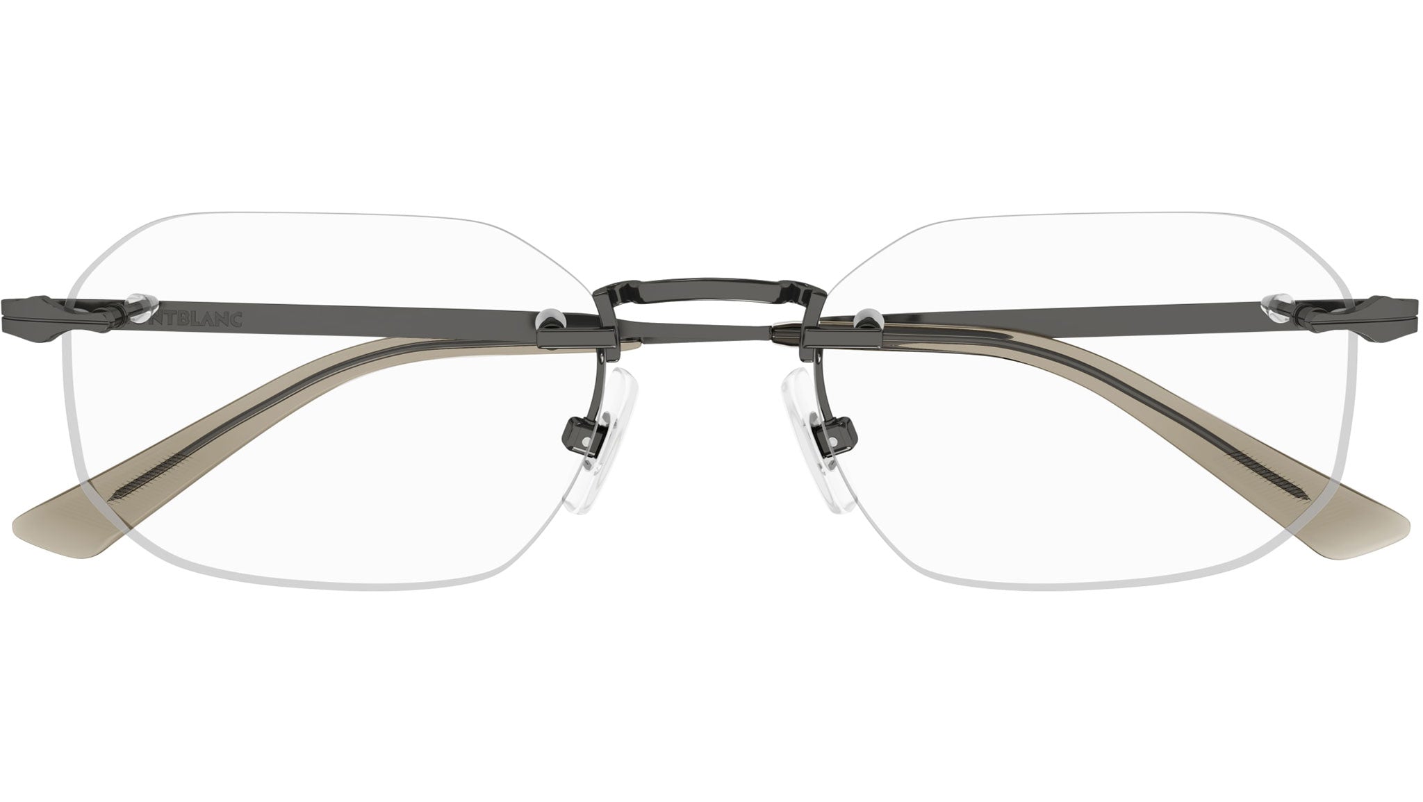 Occhiali da vista Montblanc modello MB0307O rectangle linea Nib in metallo, codice colore 002 rutenio scuro lucido con aste color rutenio e lenti demo.