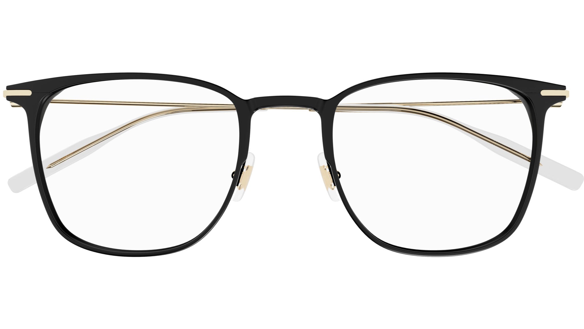 Occhiali da vista Montblanc Snowcap modello MB0356O in alluminio rettangolare nero semiopaco con aste in oro e lenti demo. Rivenditore autorizzato Montblanc online. Gli occhiali vengono consegnati con custodia e accessori originali e sono coperti dalla garanzia ufficiale di 12 mesi del produttore.