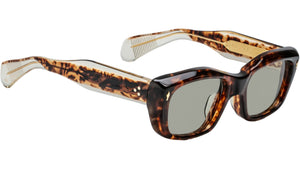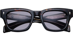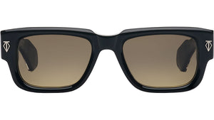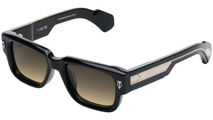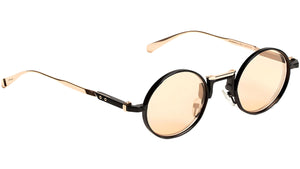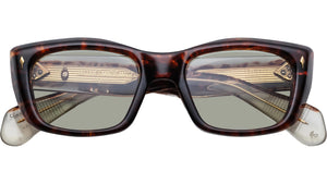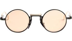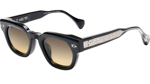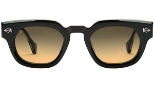 Material: 10mm block, black & tortoise acetate frame, custom double laminated acetate temples ft. precious metal hardware in 18k gold. Llens color: dark orange.