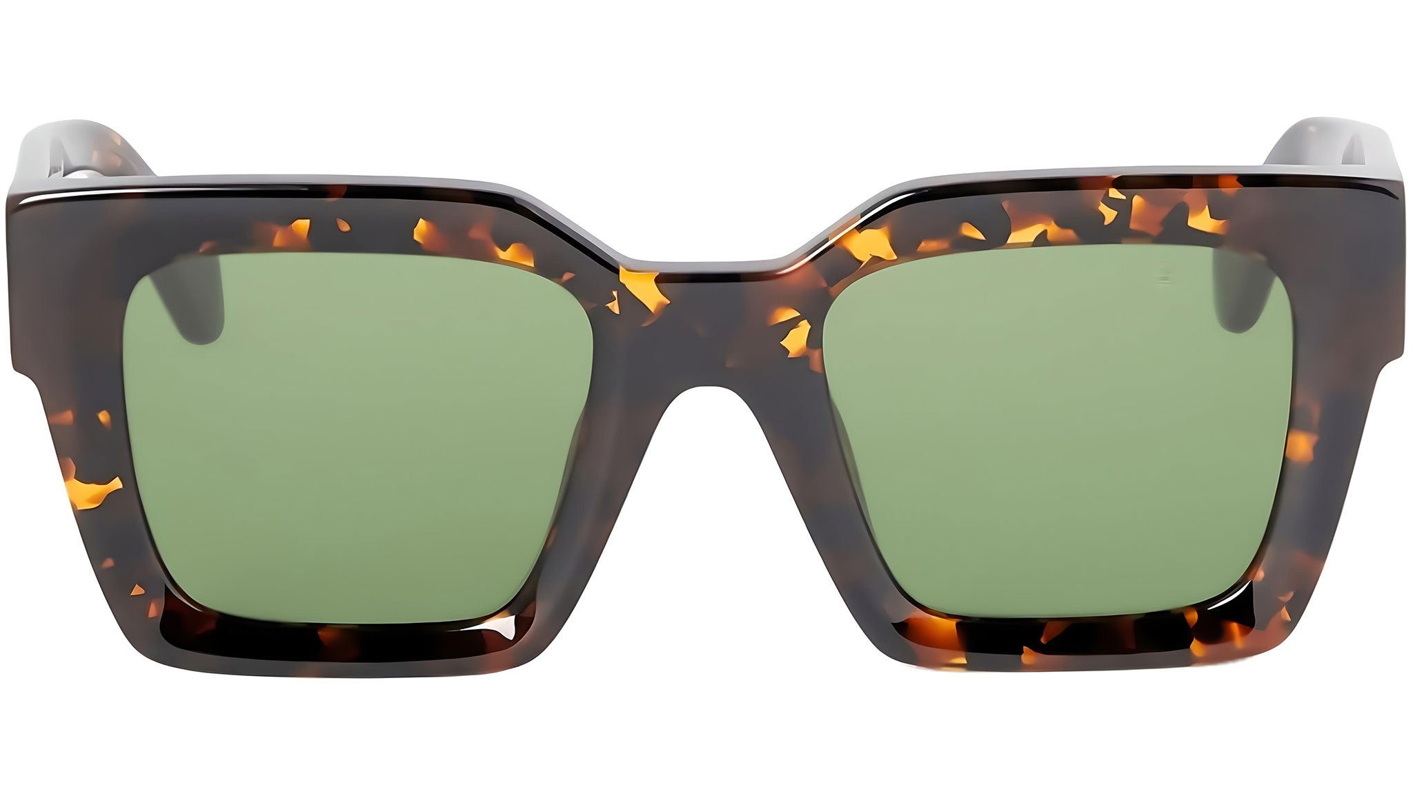 Occhiali da sole Off-White modello Jackson codice colore 6055 con frontale in acetato tartaruga e lenti cat. 3 in polimero CR-39 verde. Rivenditore autorizzato Off-White Eyewear online. Gli occhiali vengono consegnati con custodia e accessori originali e sono coperti dalla garanzia ufficiale di 12 mesi del produttore.