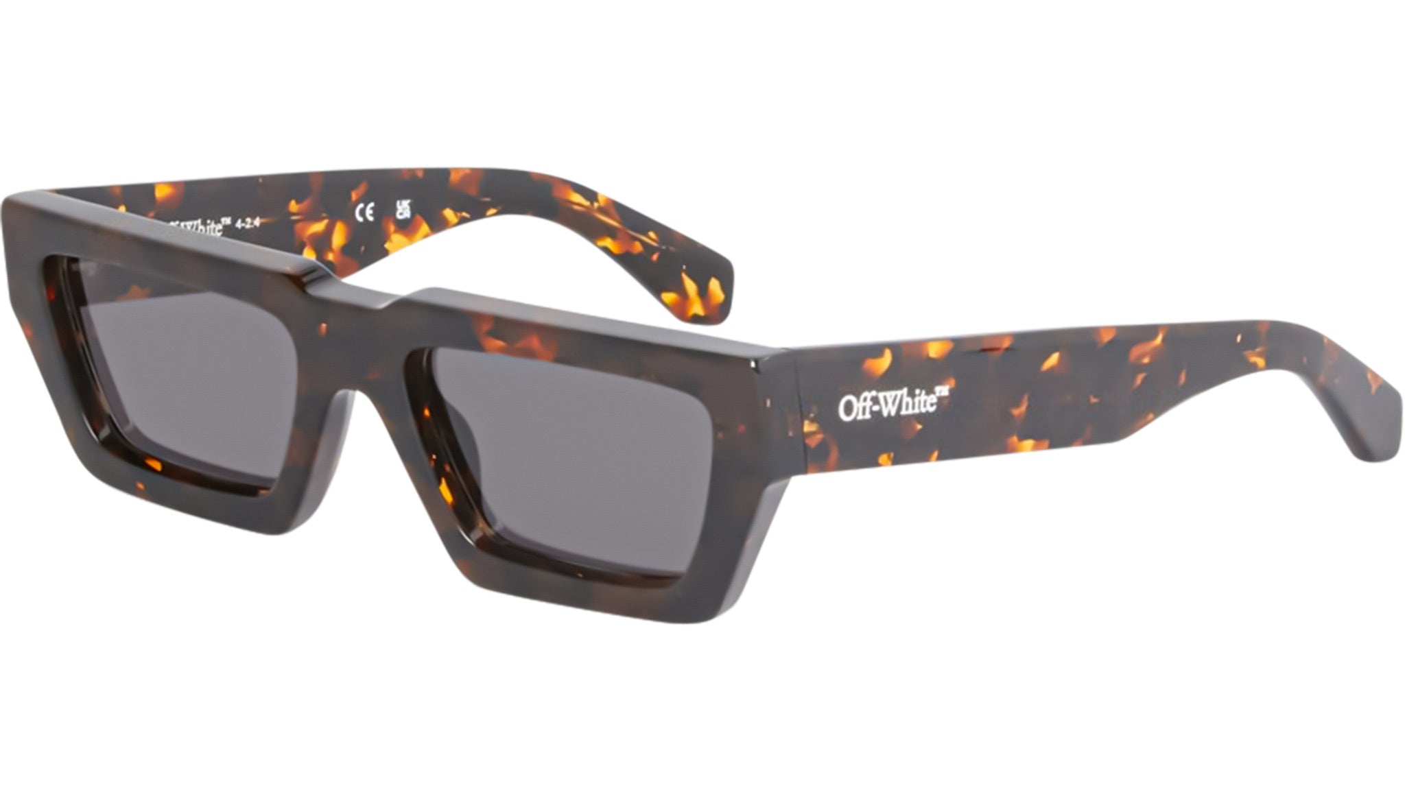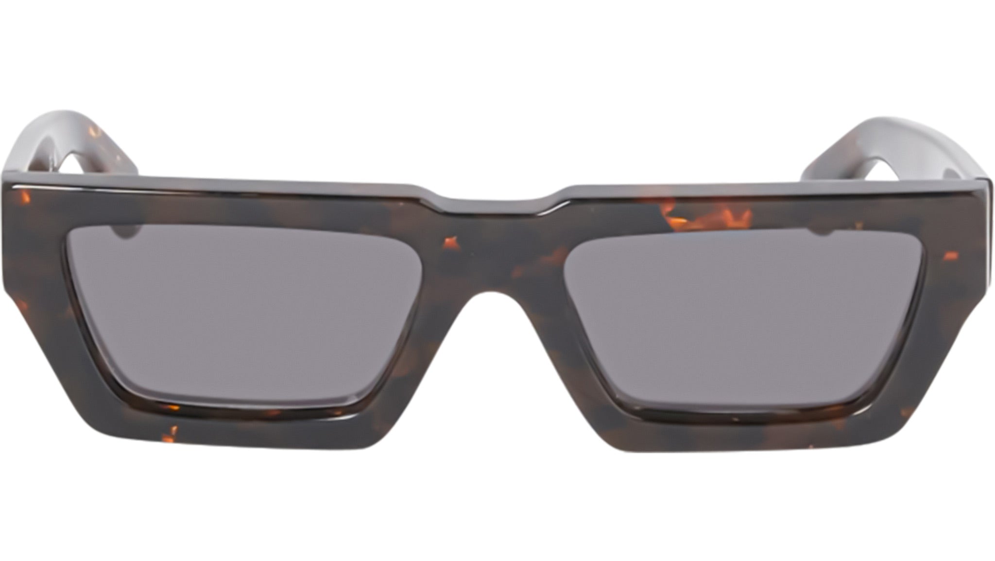 Occhiali da sole Off-White modello Manchester codice colore 6007 con frontale in acetato tartaruga e lenti cat. 3 in nylon marrone. Rivenditore autorizzato Off-White Eyewear online. Gli occhiali vengono consegnati con custodia e accessori originali e sono coperti dalla garanzia ufficiale di 12 mesi del produttore.