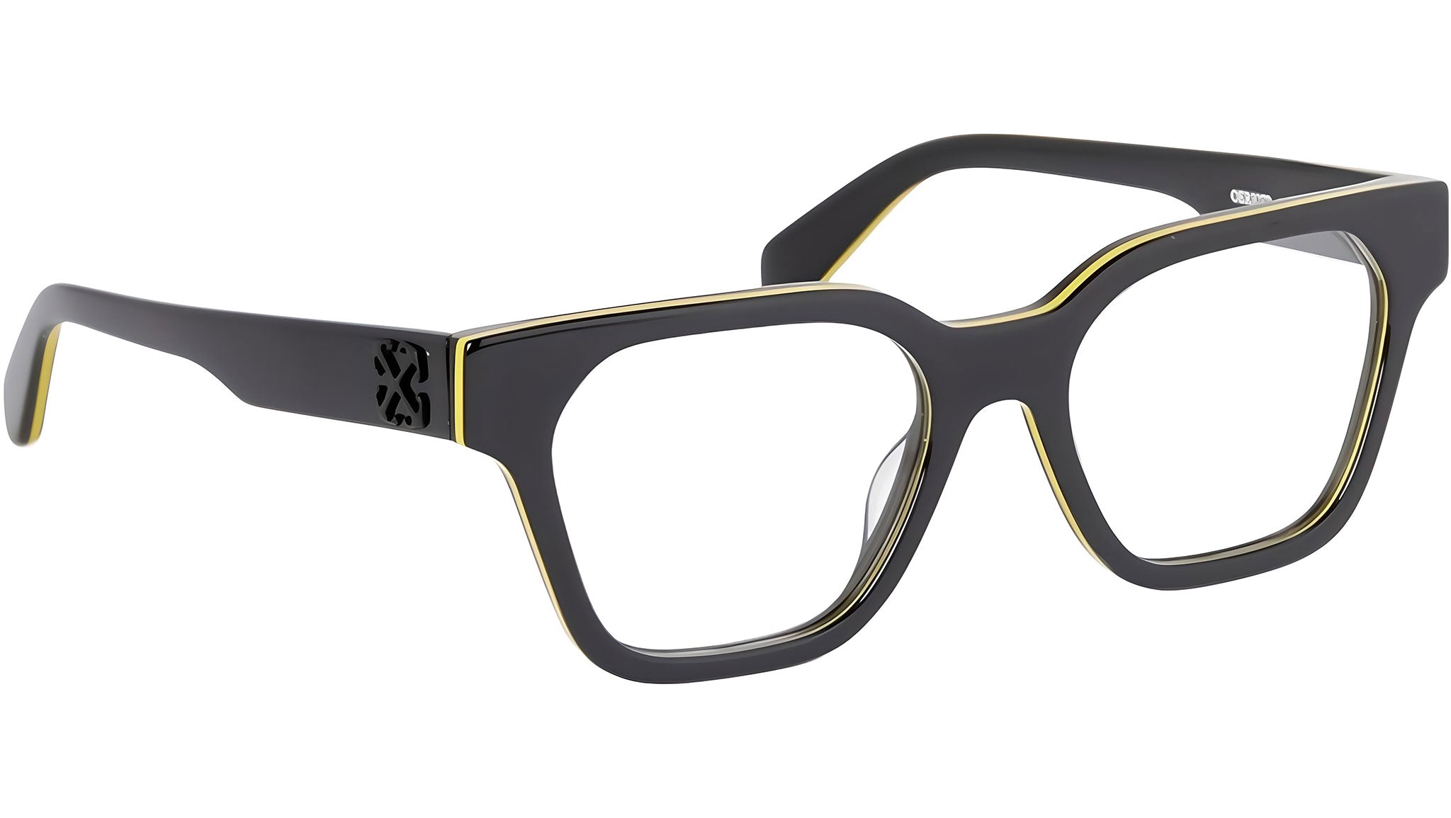 Occhiali da vista Off-White modello Style 07P codice colore 1300 con frontale in acetato nero / giallo e lenti demo. Rivenditore autorizzato Off-White Eyewear online. Gli occhiali vengono consegnati con custodia e accessori originali e sono coperti dalla garanzia ufficiale di 12 mesi del produttore.