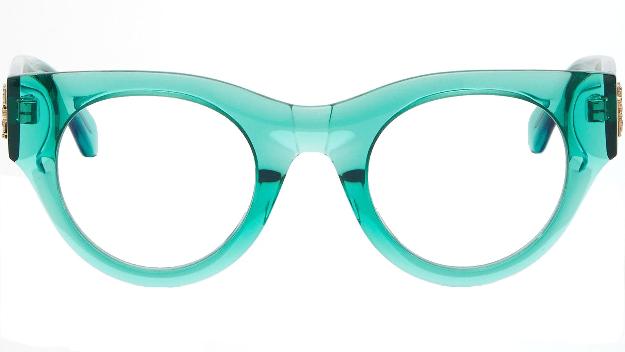 Come diceva il Direttore Creativo Virgil Abloh: "le forme sculturee sono arrivate anche sulle montature da vista". Lo stile Optical 13 ha fresature e giochi di volume che creano un effetto 3D. Di forma rotonda con estremità superiori allungate inaspettate, questo acetato è il risultato di una «contaminazione» di due forme: il panthos e la silhouette rotonda. Le aste alte sono impreziosite dal logo a freccia con foglie di edera in metallo galvanizzato. Questo modello è dotato di lenti blue che bloccano i raggi degli schermi ma può supportare quelle da vista.