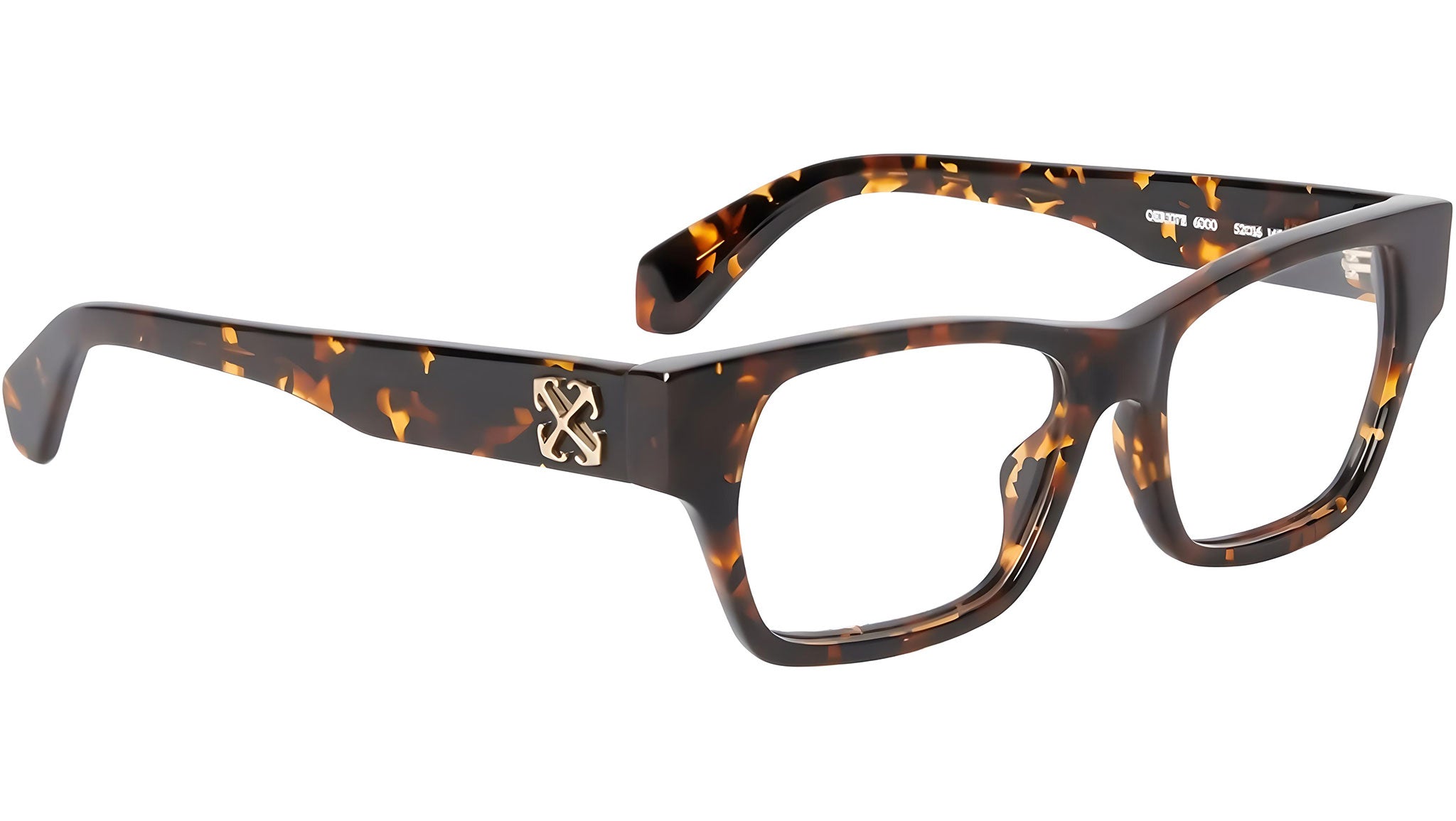 Occhiali da vista Off-White modello Style 7E codice colore 6000 con frontale in acetato tartaruga e lenti demo. Rivenditore autorizzato Off-White Eyewear online. Gli occhiali vengono consegnati con custodia e accessori originali e sono coperti dalla garanzia ufficiale di 12 mesi del produttore.