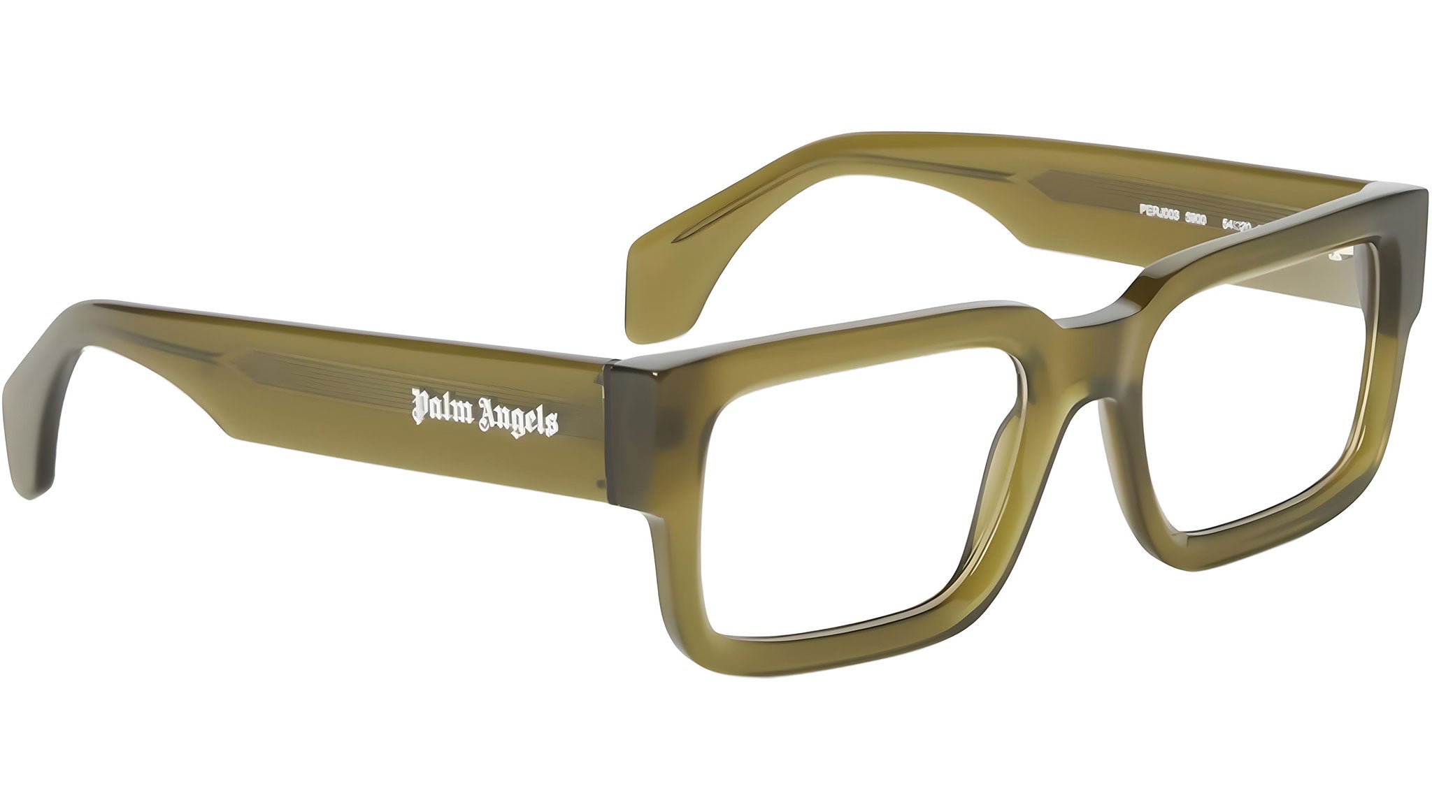 Occhiali da vista Palm Angels modello Style 3 codice colore 5900 con frontale in acetato verde trasparente e lenti demo con filtro blue block. Rivenditore autorizzato Palm Angels Eyewear online. Gli occhiali vengono consegnati con custodia e accessori originali e sono coperti dalla garanzia ufficiale di 12 mesi del produttore.