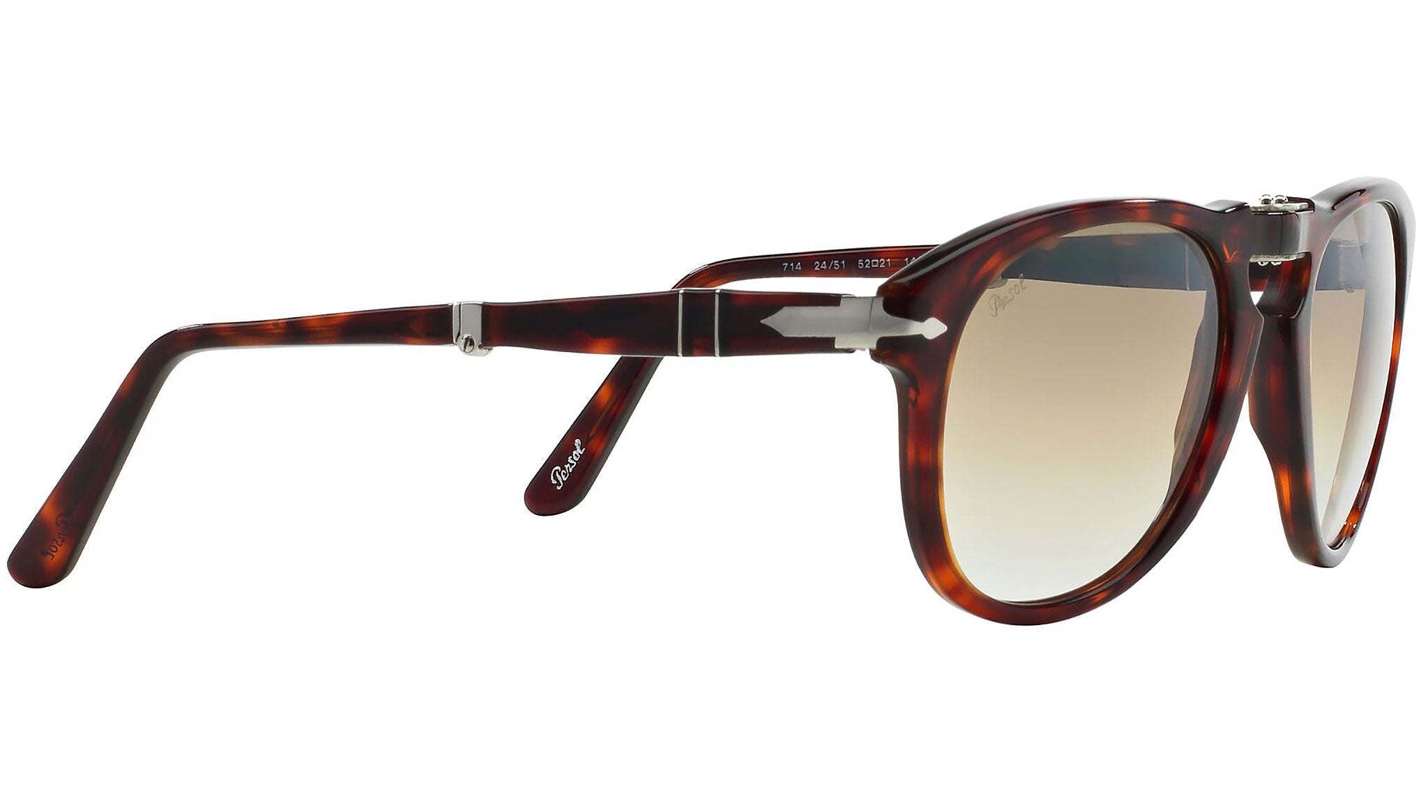 Presentato negli anni '60 come versione pieghevole del 649, il 714 è stato il primo modello di occhiali da sole pieghevole in assoluto. L'iconica forma a goccia, il ponte a chiave, gli intramontabili acetati e il sistema pieghevole ne fanno un capolavoro di alta artigianalità italiana, che richiede dieci passaggi produttivi extra rispetto ai modelli standard. Dalla soluzione standard alle polarizzate, la selezione di lenti da sole in cristallo rappresenta qualità ed eccellenza. Ogni prodotto è realizzato nei più preziosi materiali ottici e garantisce la massima protezione e chiarezza visiva. L'acetato realizzato dal cotone e pigmenti crea variazioni che caratterizzano esclusivamente gli occhiali da sole Persol, rendendo unica ogni montatura. Realizzati a mano con materiali di prima qualità, tutti gli occhiali sono un’opera d’arte naturale.