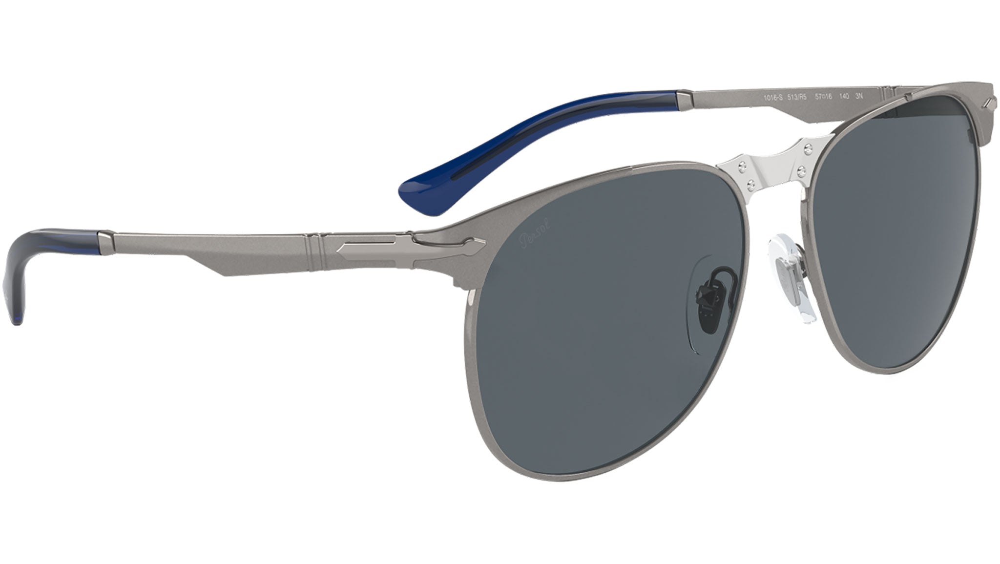 Occhiali da sole Persol PO1016S codice colore 513/R5 canna di fucile in metallo con lenti color blu. Persol fonde in modo armonioso estetica e tecnologia. Dedica un'attenzione meticolosa a ogni dettaglio, nel coniugare stile distintivo e soluzioni pratiche. Guidata da una passione incrollabile per il perfezionamento delle abilità artigianali e da una ricerca incessante in innovazione, Persol incarna la vera qualità italiana. Il suo nome evocativo significa 'per il sole', testmonianza viva del ricco patrimonio di maestria superiore ed eccellenza, all'apice della manifattura italiana artigianale. Rinomata per il suo design senza tempo e per la sua arte nel creare occhiali unici, il marchio è diventato una delle scelte più amate nell'ambito del cinema.