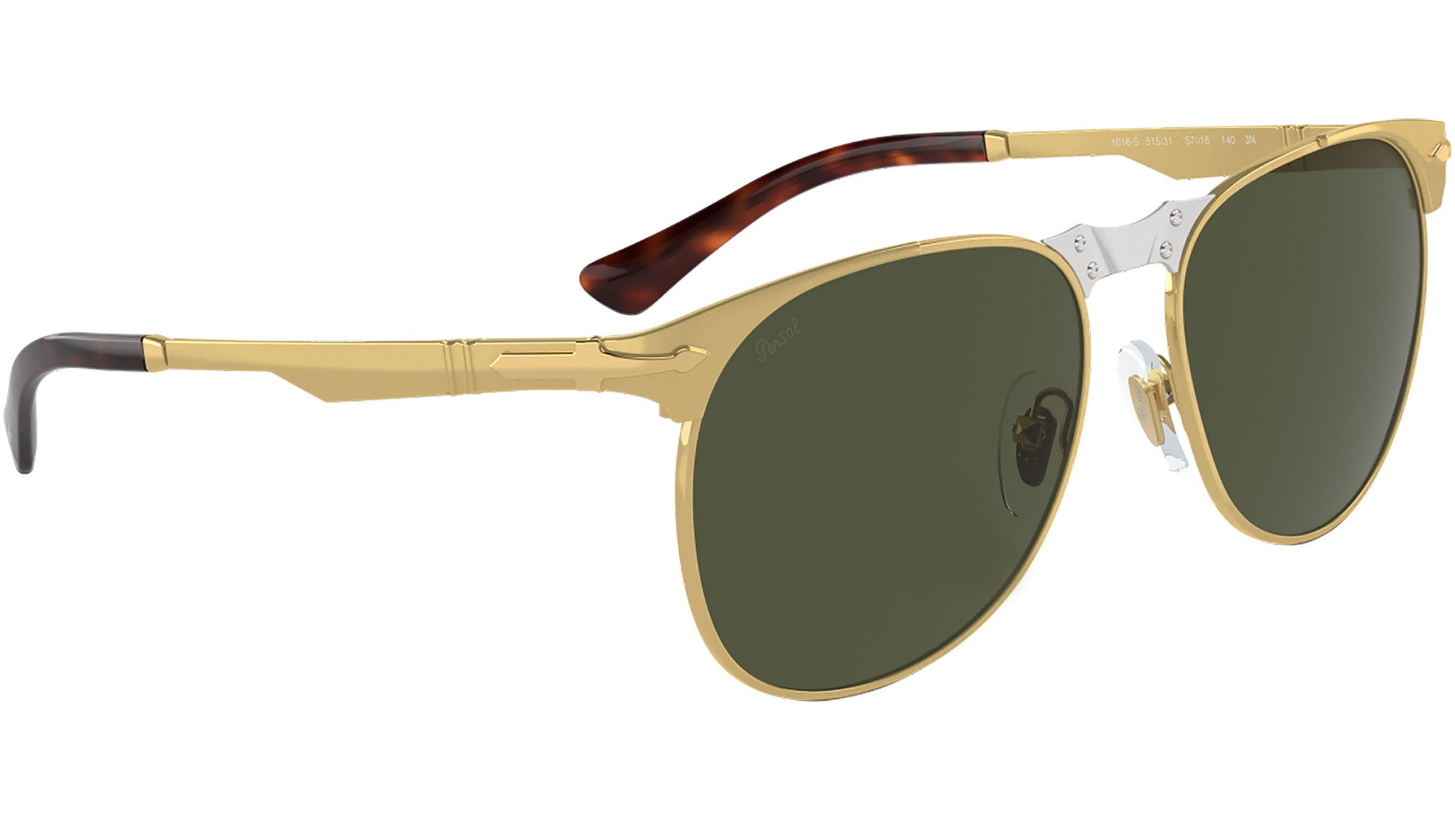 Occhiali da sole Persol PO1016S codice colore 515/31 oro in metallo con lenti color verde. Persol fonde in modo armonioso estetica e tecnologia. Dedica un'attenzione meticolosa a ogni dettaglio, nel coniugare stile distintivo e soluzioni pratiche. Guidata da una passione incrollabile per il perfezionamento delle abilità artigianali e da una ricerca incessante in innovazione, Persol incarna la vera qualità italiana. Il suo nome evocativo significa 'per il sole', testmonianza viva del ricco patrimonio di maestria superiore ed eccellenza, all'apice della manifattura italiana artigianale. Rinomata per il suo design senza tempo e per la sua arte nel creare occhiali unici, il marchio è diventato una delle scelte più amate nell'ambito del cinema.