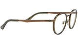 Costruzione in metallo e cerchi in acetato per questa montatura dalla forma phantos impreziosita da dettagli levigati sul ponte, per un effetto full metal meno lucido ma più sofisticato. Il modello è arricchito da cerniere Flex su metallo e terminali in colorazione coordinata con i cerchi.