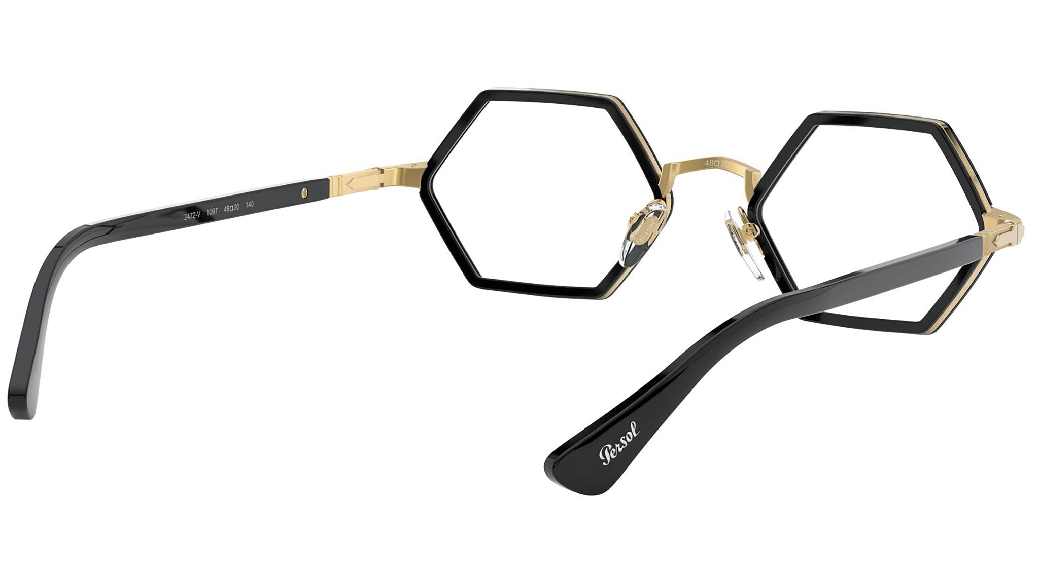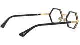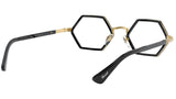 "Questa montatura geometrica dalla forma esagonale è proposta con una costruzione in metallo e cerchi in acetato, in continuità con le collezioni passate. I nuovi terminali, in acetato e in una versione più lunga, si accompagnano ad un inedito ponte in metallo che dona un senso di eleganza senza tempo arricchita da un pizzico di sofisticata modernità e design eclettico."