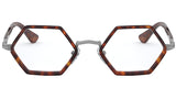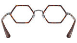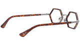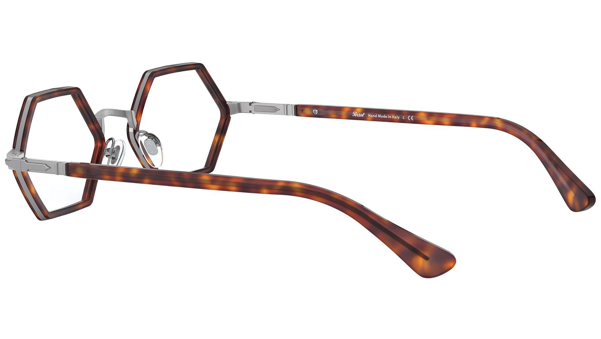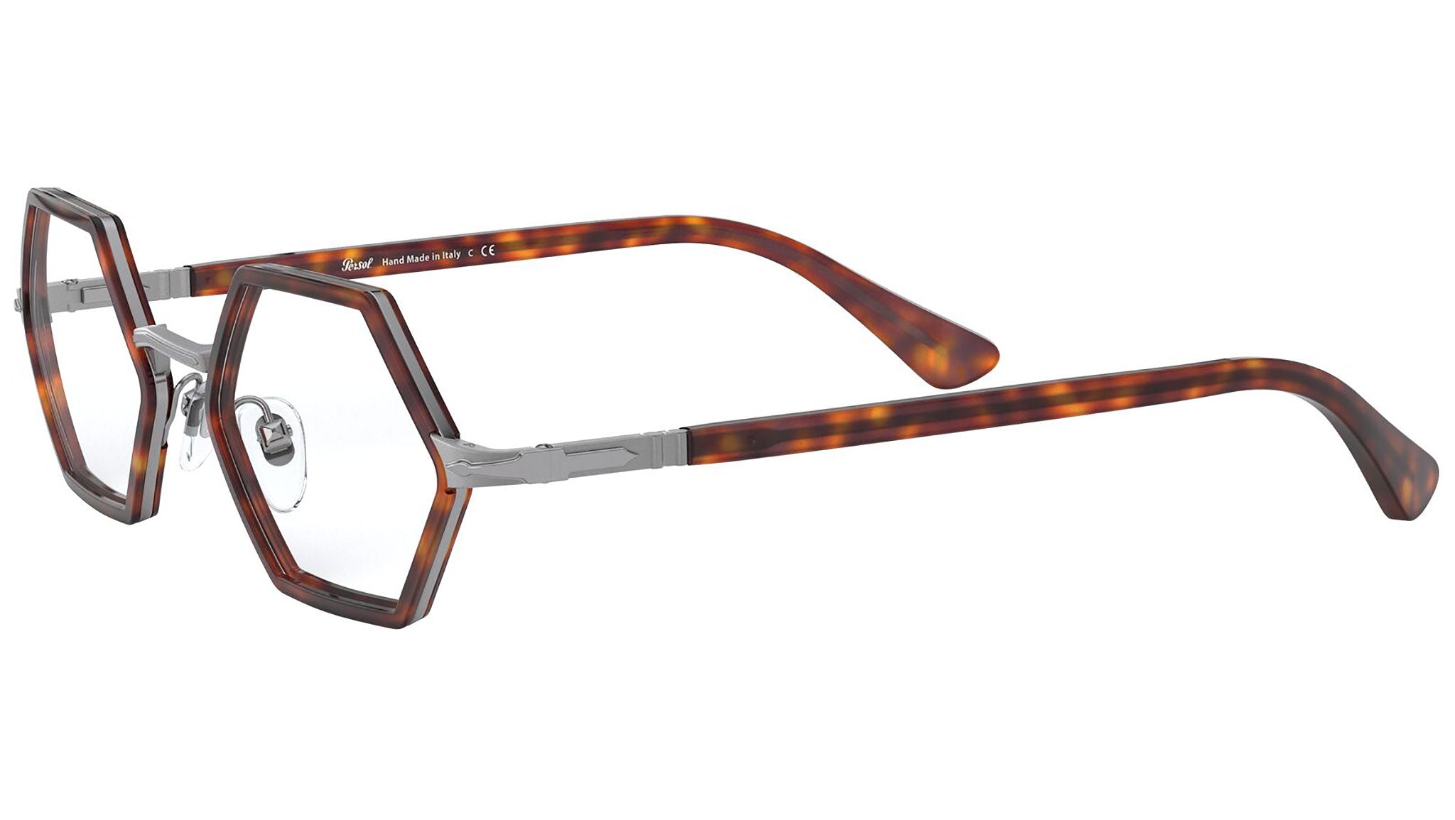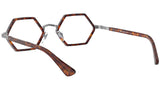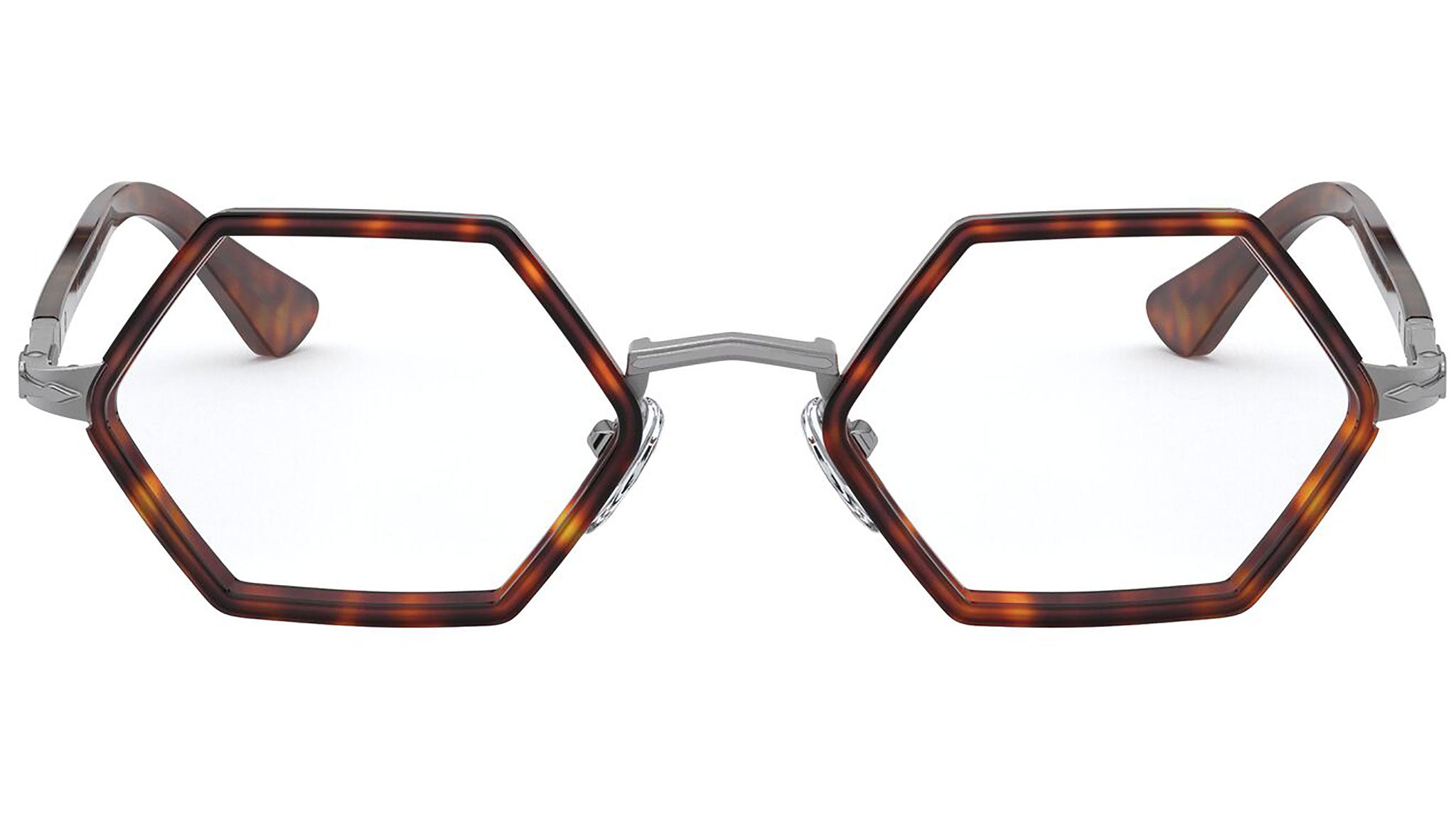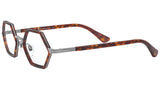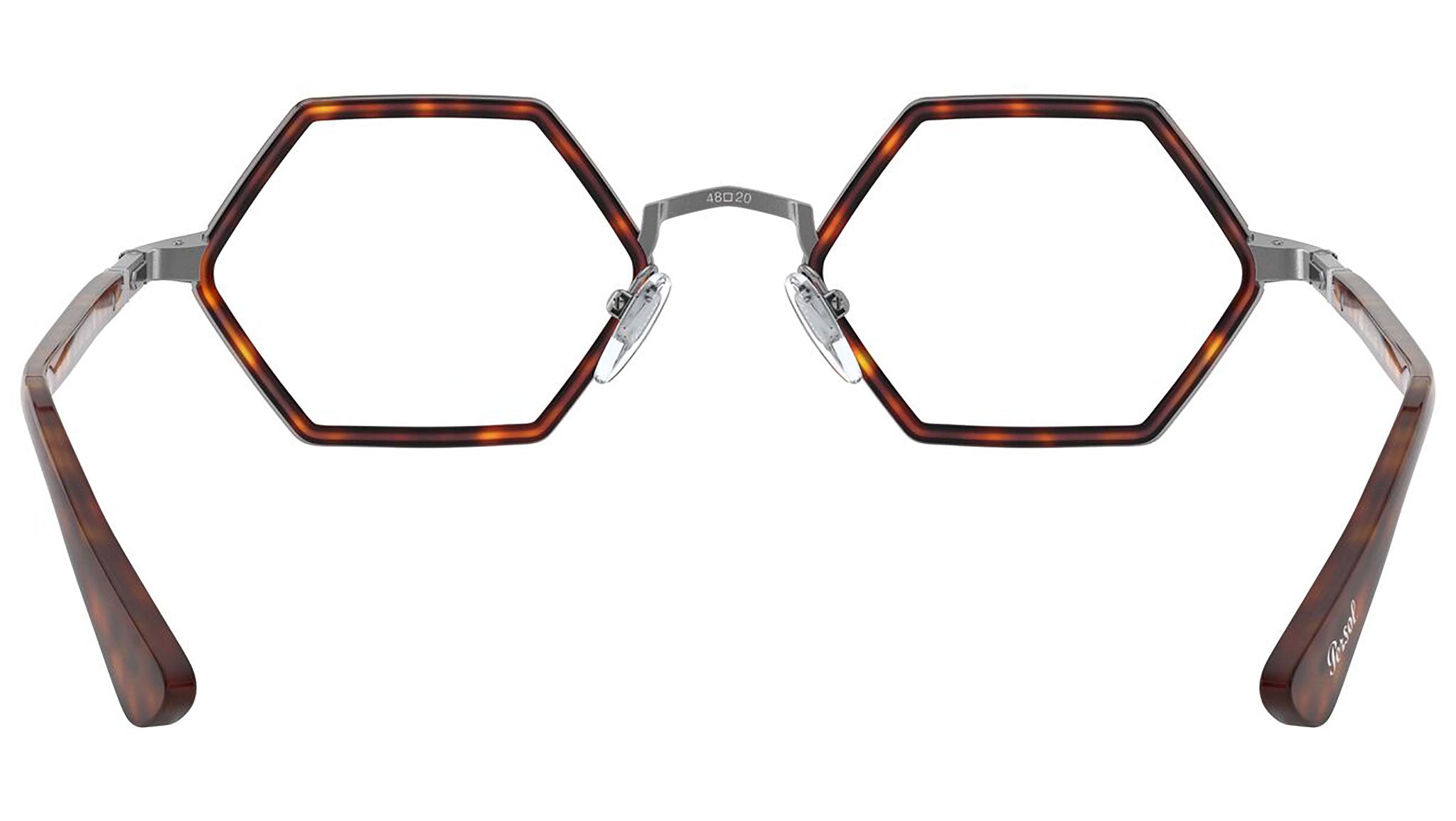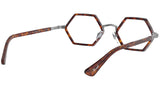 "Questa montatura geometrica dalla forma esagonale è proposta con una costruzione in metallo e cerchi in acetato, in continuità con le collezioni passate. I nuovi terminali, in acetato e in una versione più lunga, si accompagnano ad un inedito ponte in metallo che dona un senso di eleganza senza tempo arricchita da un pizzico di sofisticata modernità e design eclettico."