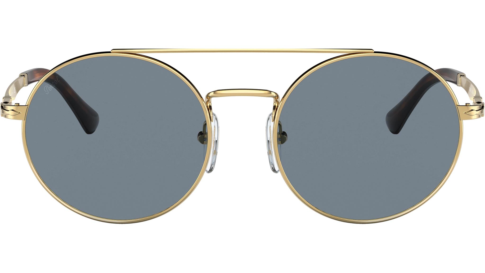 Occhiali da sole Persol modello PO2496S codice colore 515/56 con montatura color oro full rim metallo e lenti in vetro color blu.