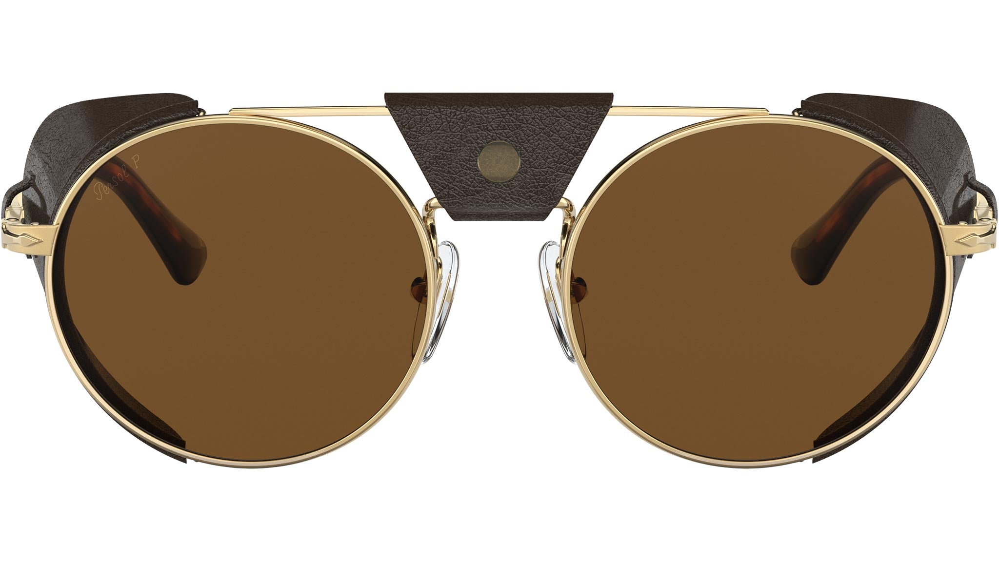 Occhiali da sole Persol modello PO2496SZ codice colore 114057 con montatura color oro full rim metallo e lenti in vetro color marrone.
