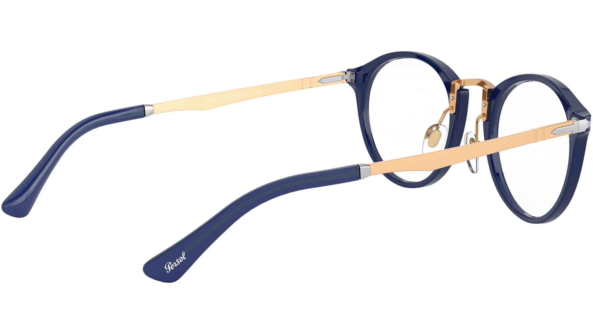 Occhiali da vista Persol modello PO3248V codice colore 181 con montatura full rim in acetato color cobalto e lenti demo.