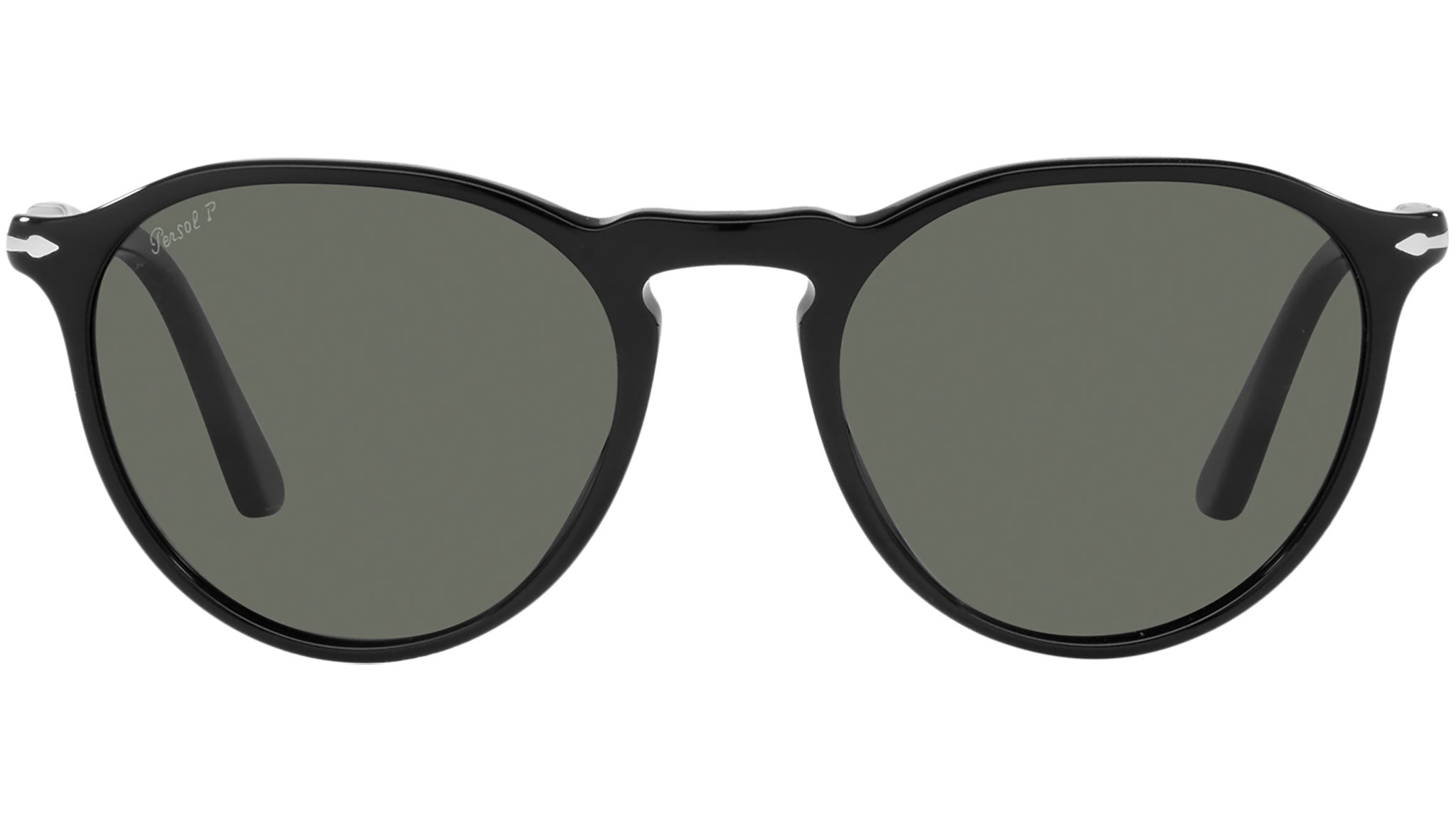 Occhiali da sole Persol modello PO3286S codice colore 95/58 con montatura color nero full rim acetato e lenti in vetro color verde.