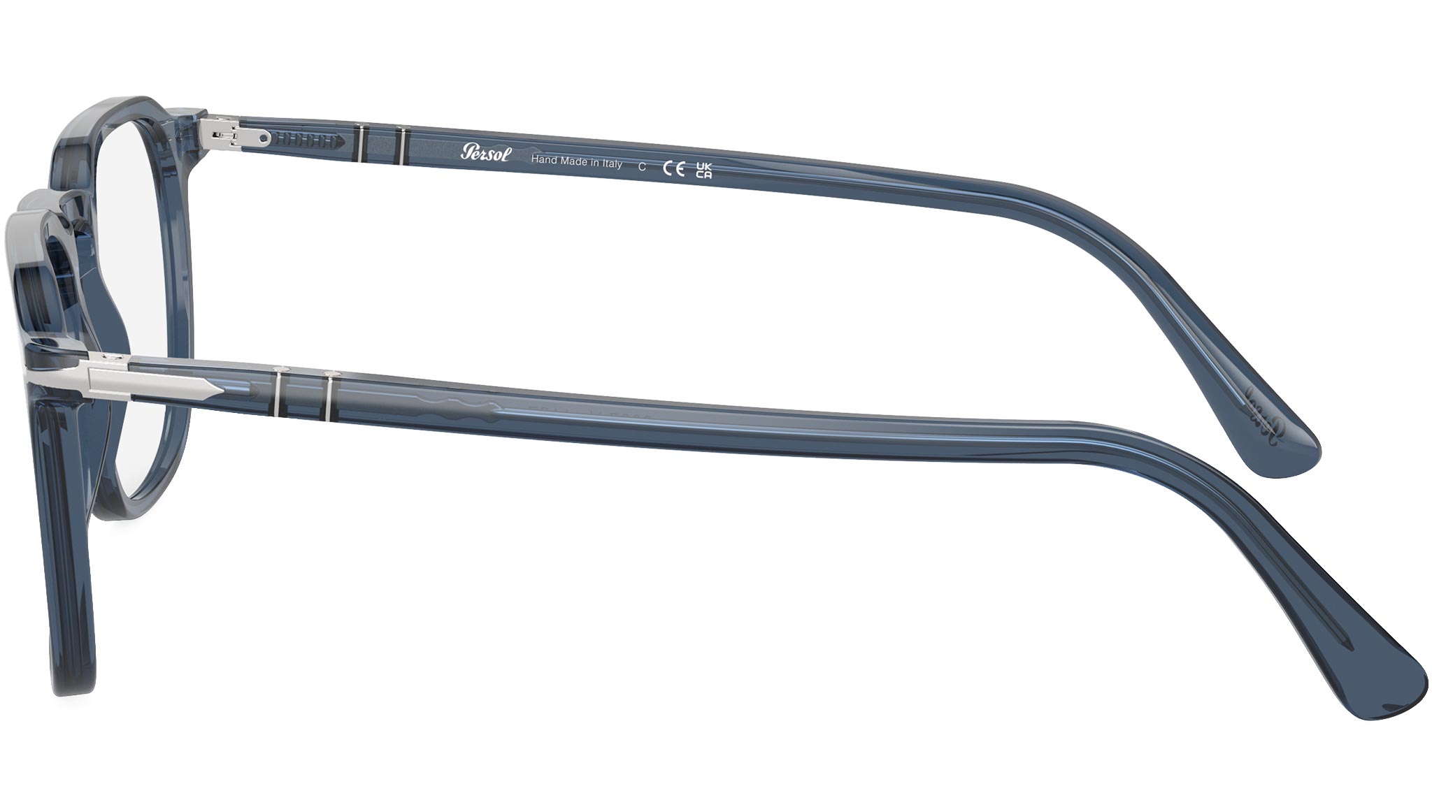 Montatura da vista Persol PO3337V codice colore 1197 in acetato blu trasparente con lenti demo. Persol fonde in modo armonioso estetica e tecnologia. Dedica un'attenzione meticolosa a ogni dettaglio, nel coniugare stile distintivo e soluzioni pratiche. Guidata da una passione incrollabile per il perfezionamento delle abilità artigianali e da una ricerca incessante in innovazione, Persol incarna la vera qualità italiana. Il suo nome evocativo significa 'per il sole', testmonianza viva del ricco patrimonio di maestria superiore ed eccellenza, all'apice della manifattura italiana artigianale. Rinomata per il suo design senza tempo e per la sua arte nel creare occhiali unici, il marchio è diventato una delle scelte più amate nell'ambito del cinema.