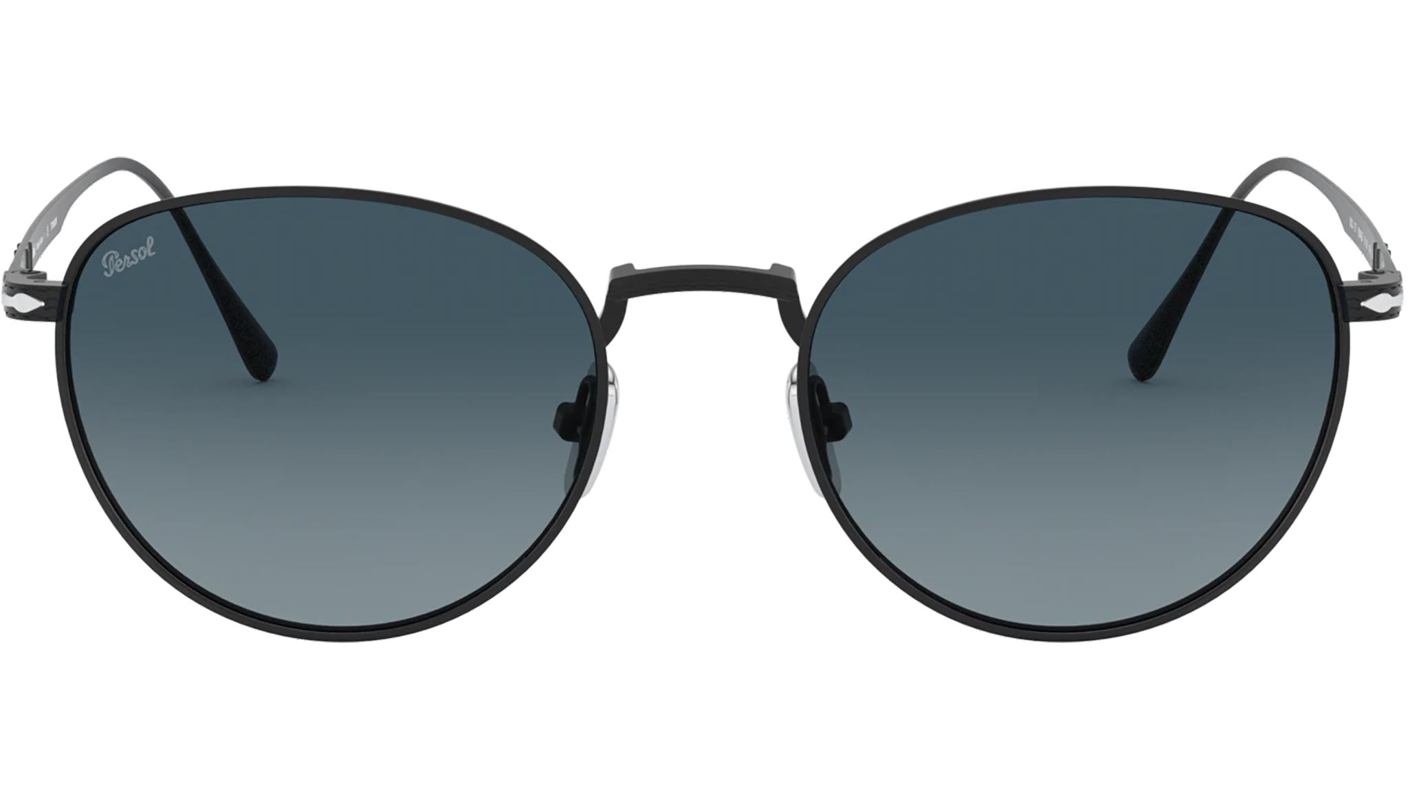 Occhiali da sole Persol modello PO5002ST codice colore 8004Q8 con montatura color nero opaco full rim titanio e lenti in CR-39 color blu.