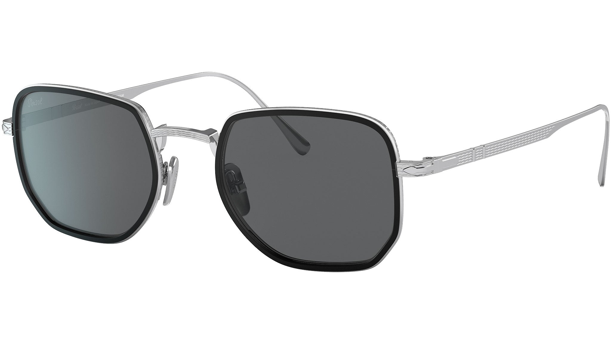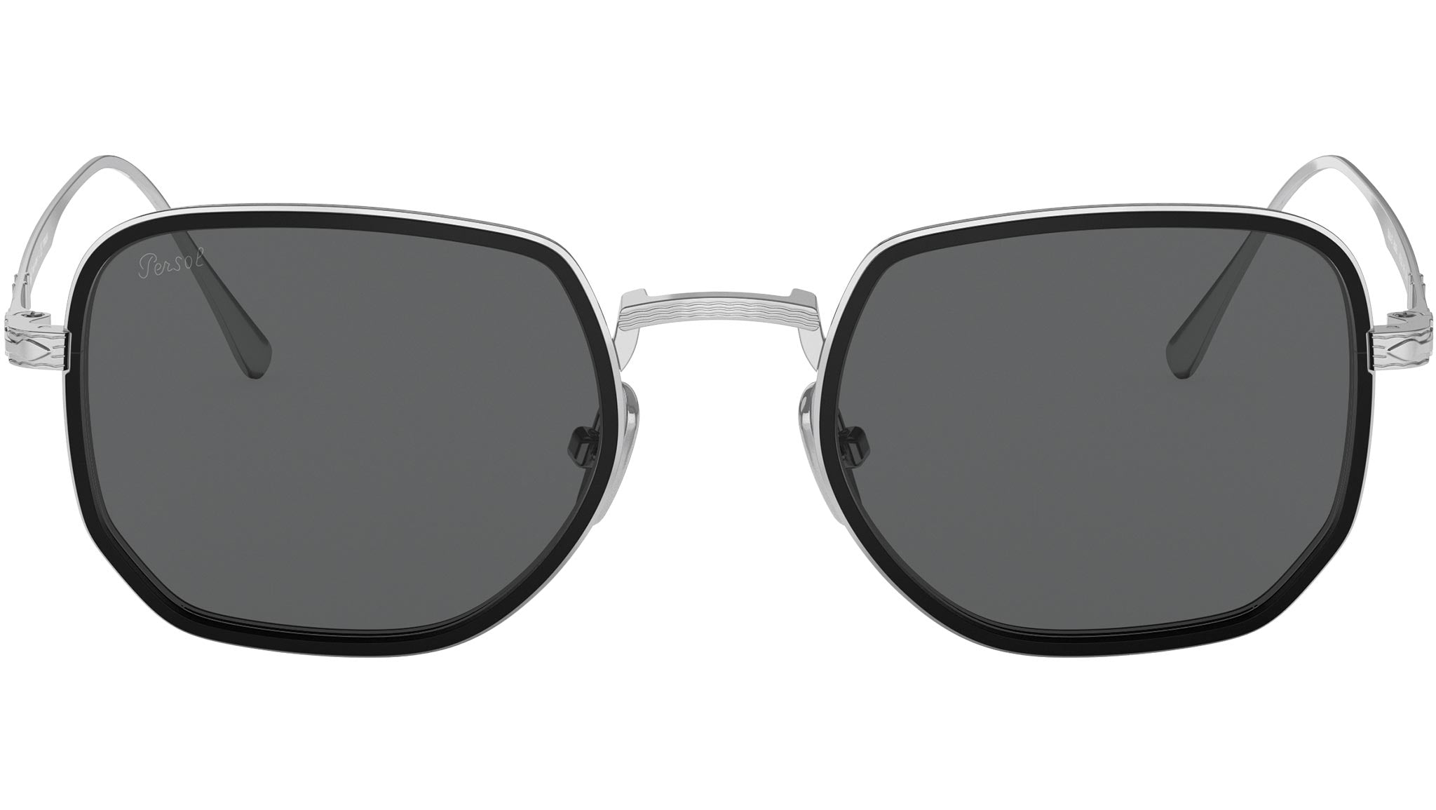 Occhiali da sole Persol modello PO5006ST codice colore 8006B1 con montatura color argento e nero full rim titanio e lenti in CR-39 color grigio.
